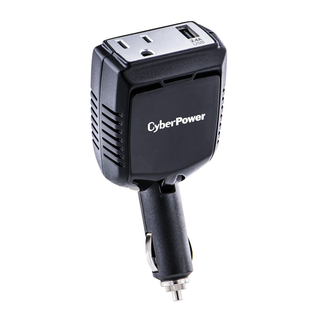 The CyberPower 160 Power Inverter (CPS160PBURC1) from CyberPower converts power from your vehicle's 12V DC power outlet to household AC power to simultaneously power two devices with its one AC household outlet and a 2.4-Amp USB port. The CyberPower 160 features include a pivoting DC plug to fit into tight spaces in your vehicle and a 15-Amp fuse for overcurrent protection. It also provides surge protection and automatic power shutdown to protect your connected devices from damaging surges and your automotive battery from power drain. The CyberPower 160, backed by a two-year limited warranty, is ideal for mobile devices, entertainment electronics, and other accessories that use up to 160-watts of power.