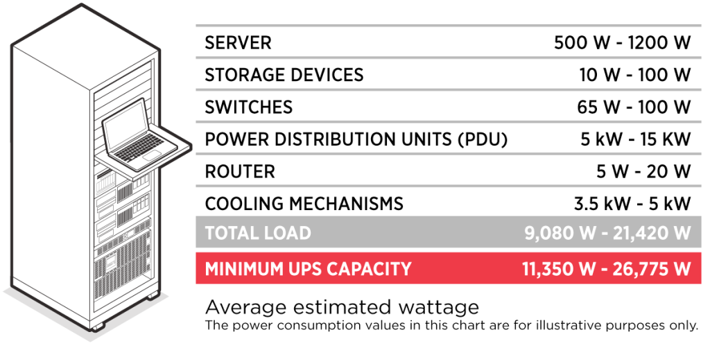 Note: In this scenario, the Total Load was multiplied by 1.25 to determine the UPS size with overhead.