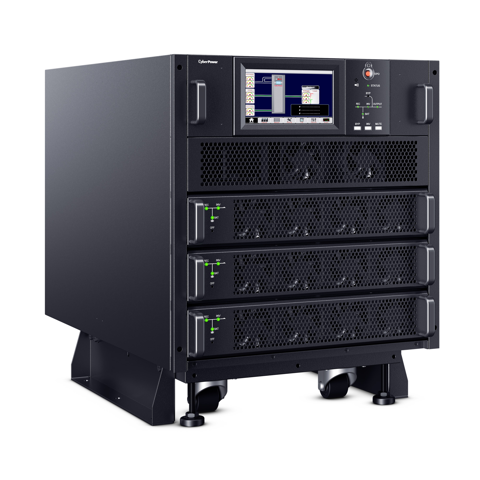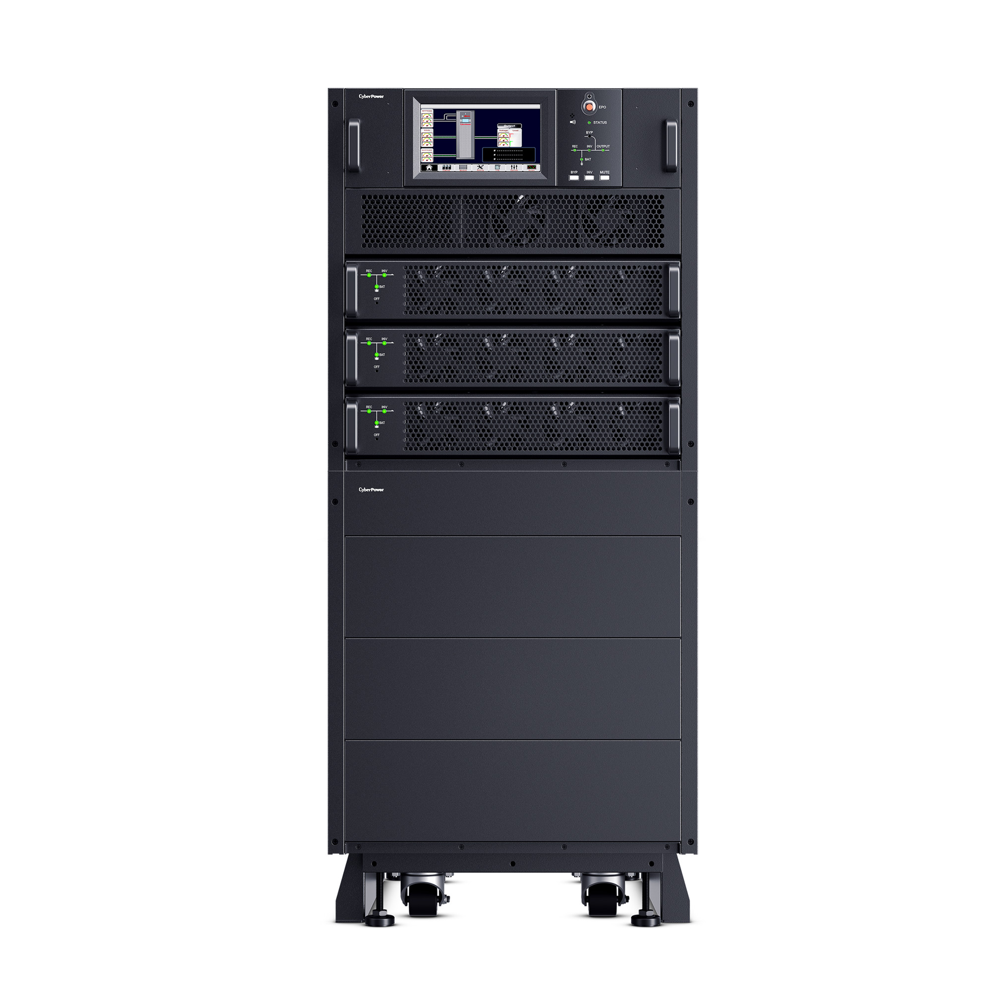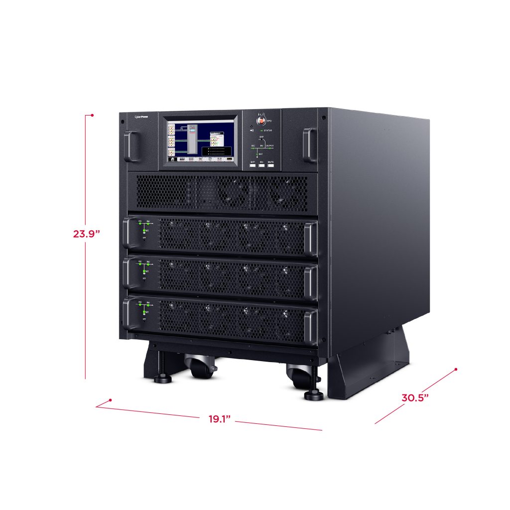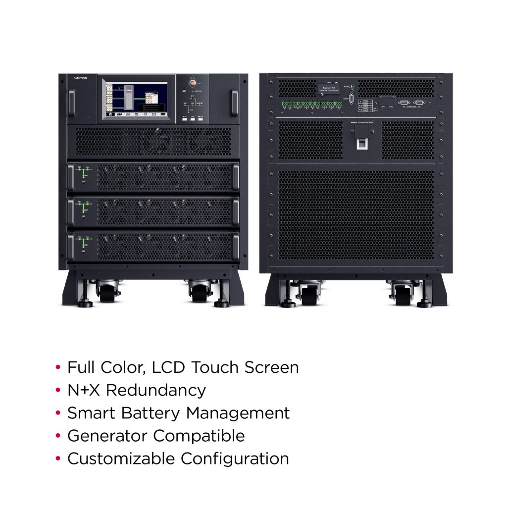 The CyberPower SM020KAMFA Smart App Online 3-Phase Modular UPS System brings flexibility, space savings, and efficiency to 3-Phase power protection technology. Configurable for N+N system or N+1 power module redundancy, the system can intelligently manage individual modules to achieve higher efficiency. The customizable modular design can be configured as a tower, side-by-side, or integrated within a rack. The high-density, scalable 10kVA/10kW power modules are 2U in height, saving space while providing more options for capacity expansion.