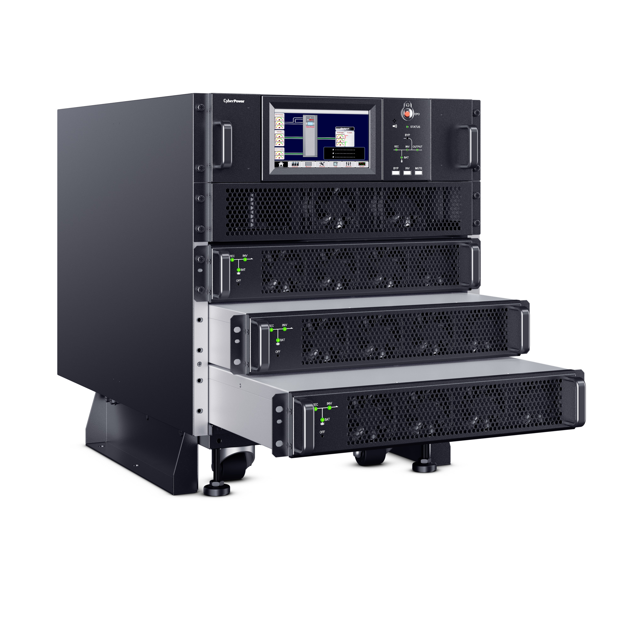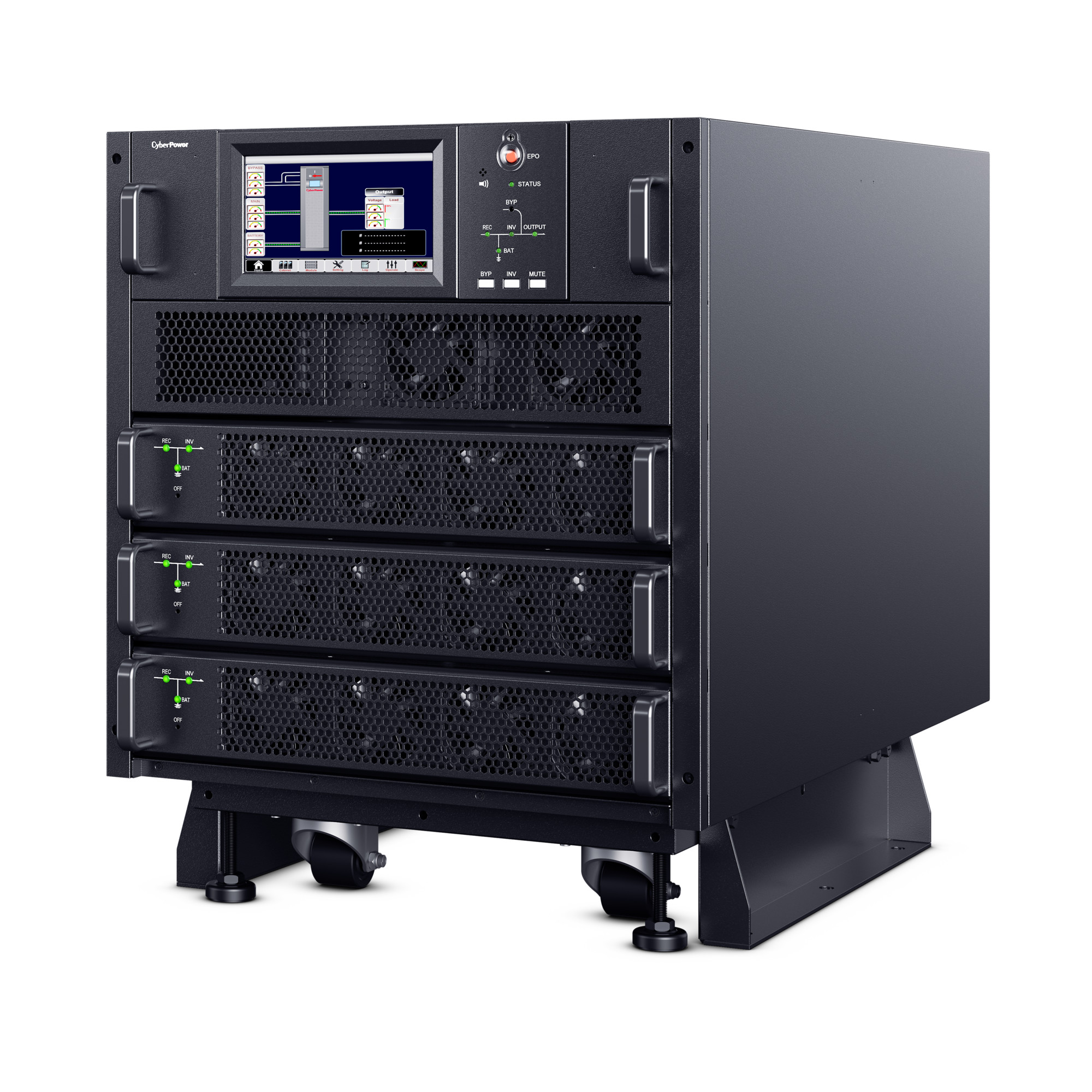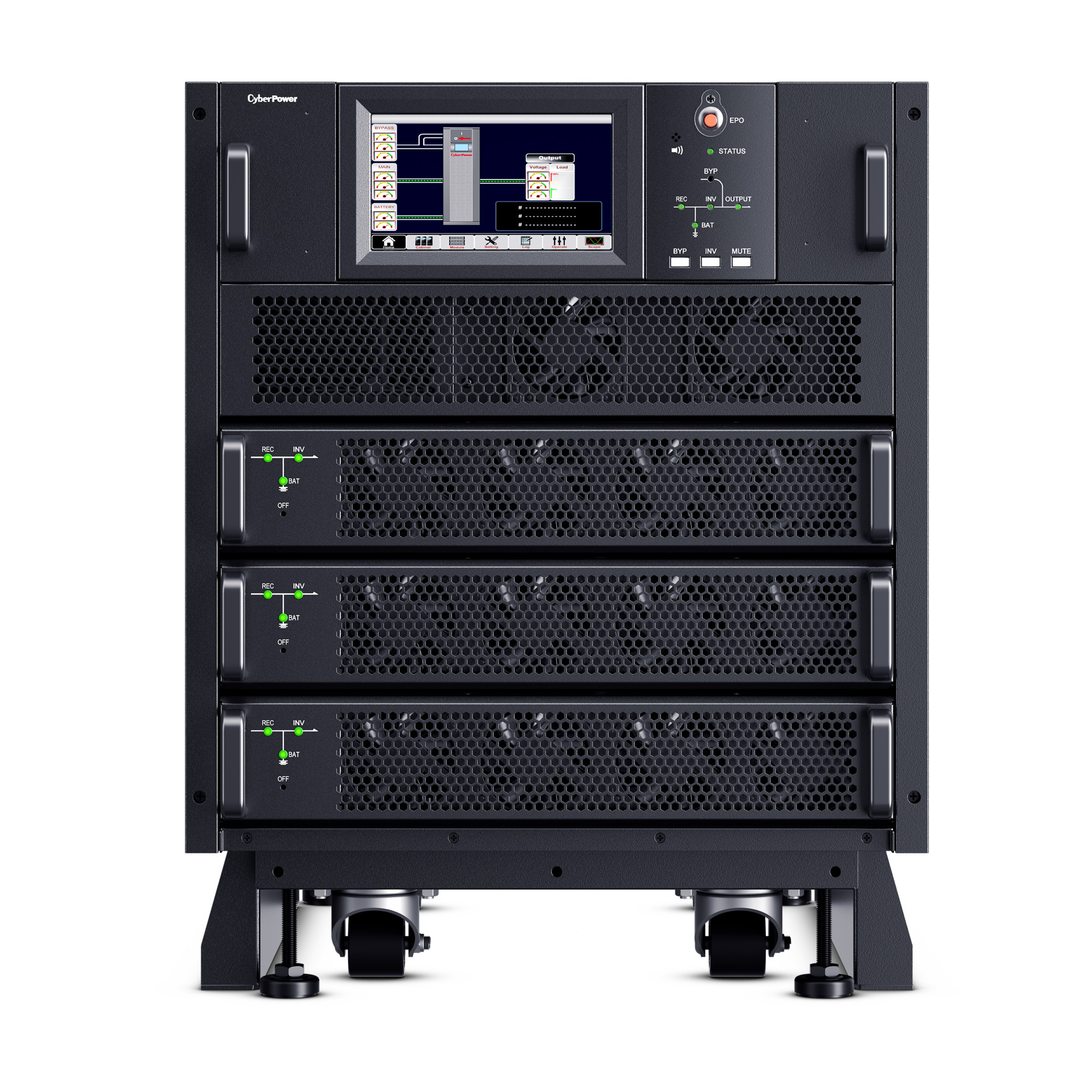 The CyberPower SM020KAMFA Smart App Online 3-Phase Modular UPS System brings flexibility, space savings, and efficiency to 3-Phase power protection technology. Configurable for N+N system or N+1 power module redundancy, the system can intelligently manage individual modules to achieve higher efficiency. The customizable modular design can be configured as a tower, side-by-side, or integrated within a rack. The high-density, scalable 10kVA/10kW power modules are 2U in height, saving space while providing more options for capacity expansion.