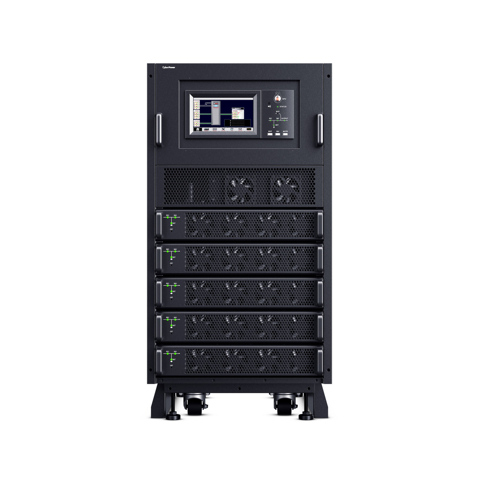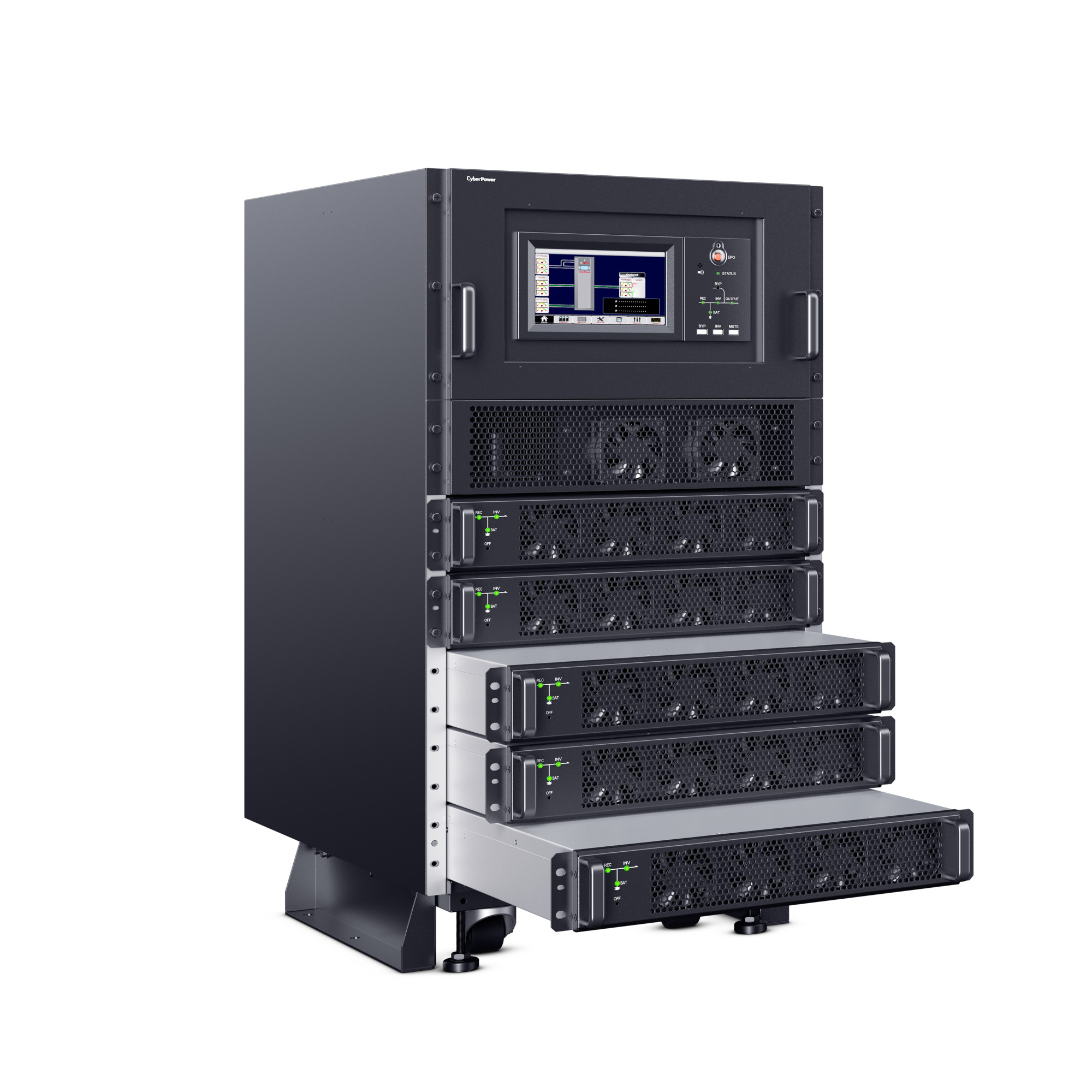 The CyberPower SM040KAMFA Smart App Online 3-Phase Modular UPS System brings flexibility, space savings, and efficiency to 3-Phase power protection technology. Configurable for N+N system or N+1 power module redundancy, the system can intelligently manage individual modules to achieve higher efficiency. The customizable modular design can be configured as a tower, side-by-side, or integrated within a rack. The high-density, scalable 10kVA/10kW power modules are 2U in height, saving space while providing more options for capacity expansion.