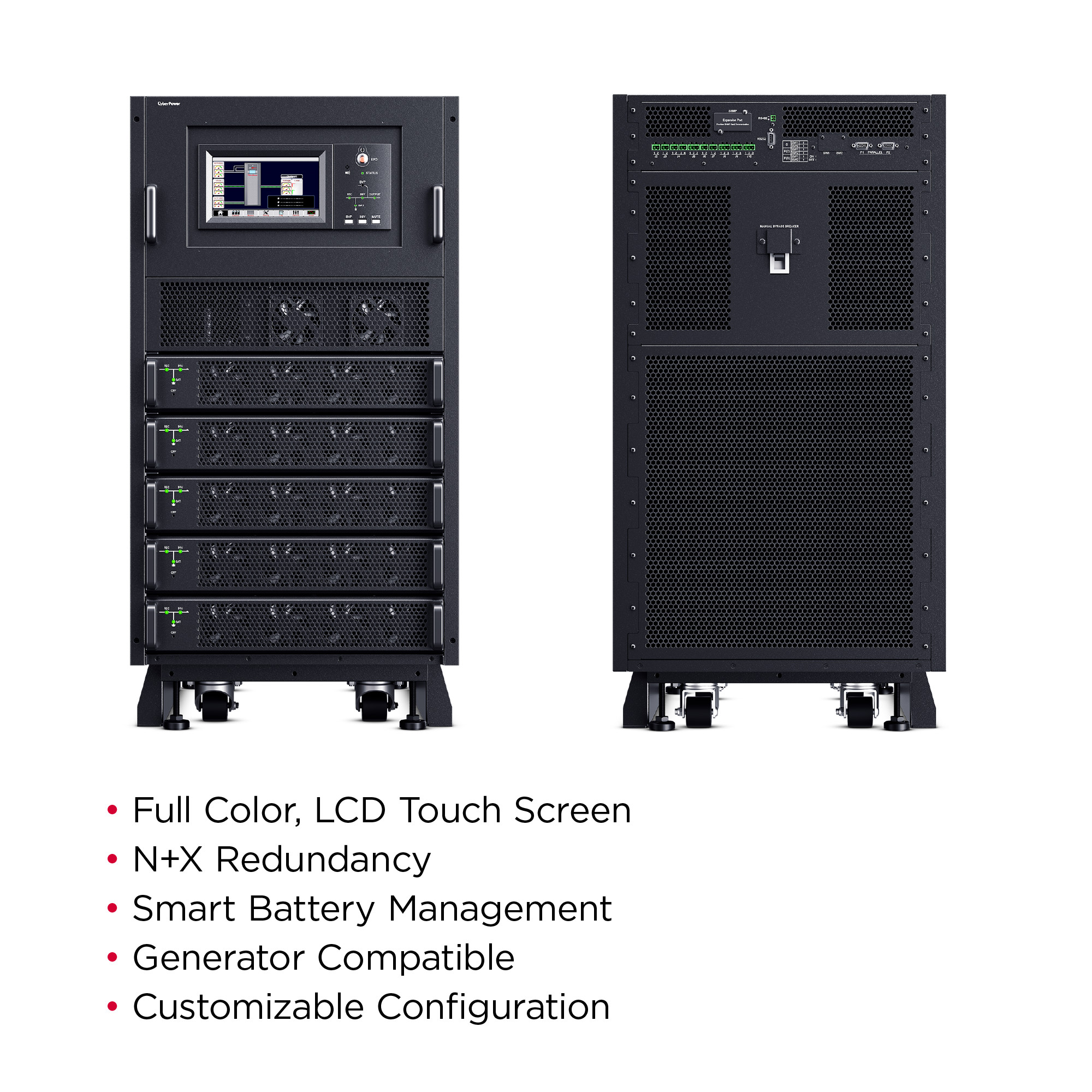 Ensures uninterrupted operation if the entire system fails. N+1 redundancy guarantees system availability if one power module fails.
