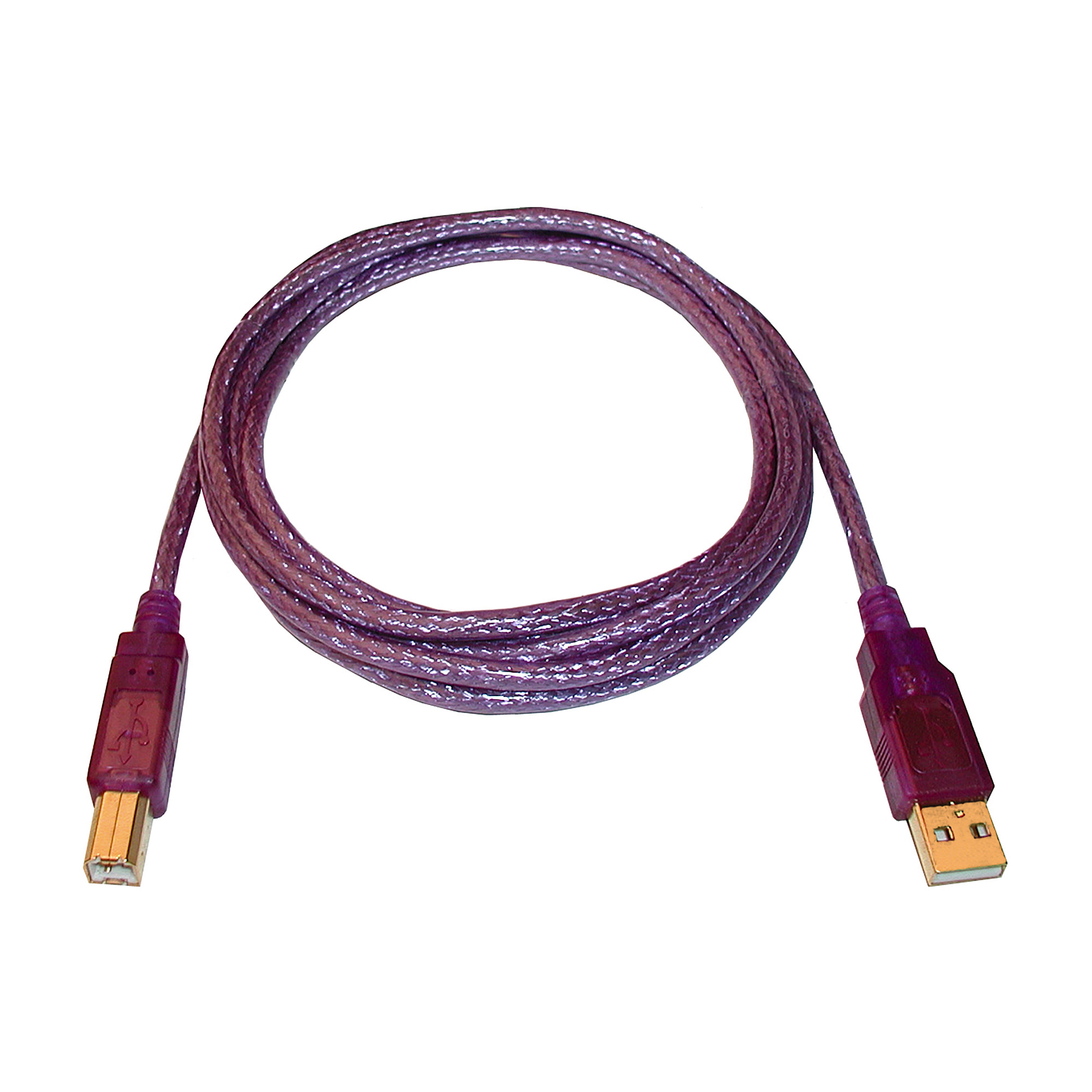 The CyberPower USB 2.0 Cable USB-2AB2.0-PG provides up to 480 Mbps transfer rate and connects a printer, scanner, external hard drive, or other USB device to a PC or Mac computer. This purple cable measures 6' 5" (2 meters) and has type A to type B connectors. Compatible with USB 2.0 and USB 1.1, the USB-2AB2.0-PG supports as many as 127 devices in a daisy-chain configuration while minimizing crosstalk. The 24K gold-plated copper contacts provide excellent conductivity for accurate high-speed transmissions.