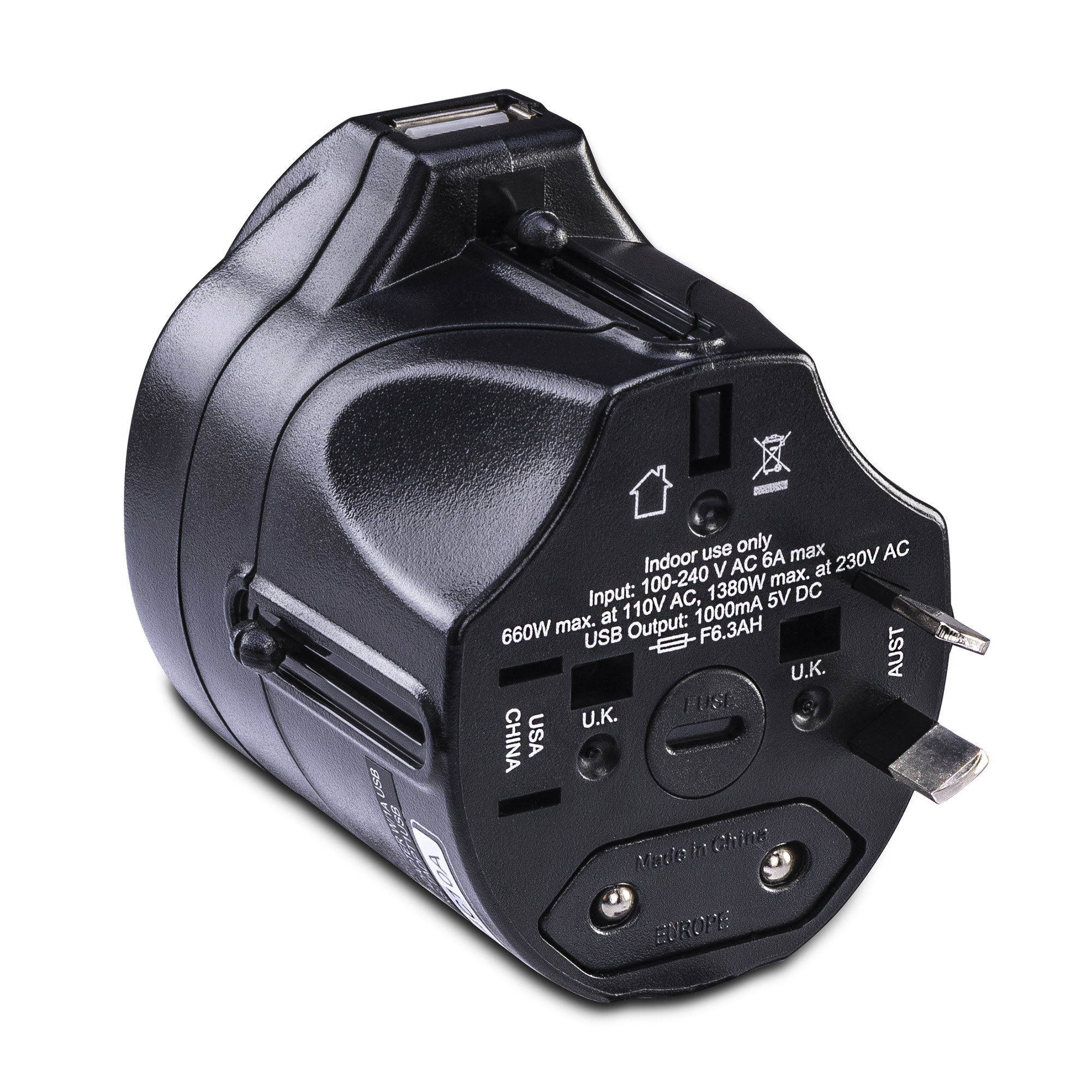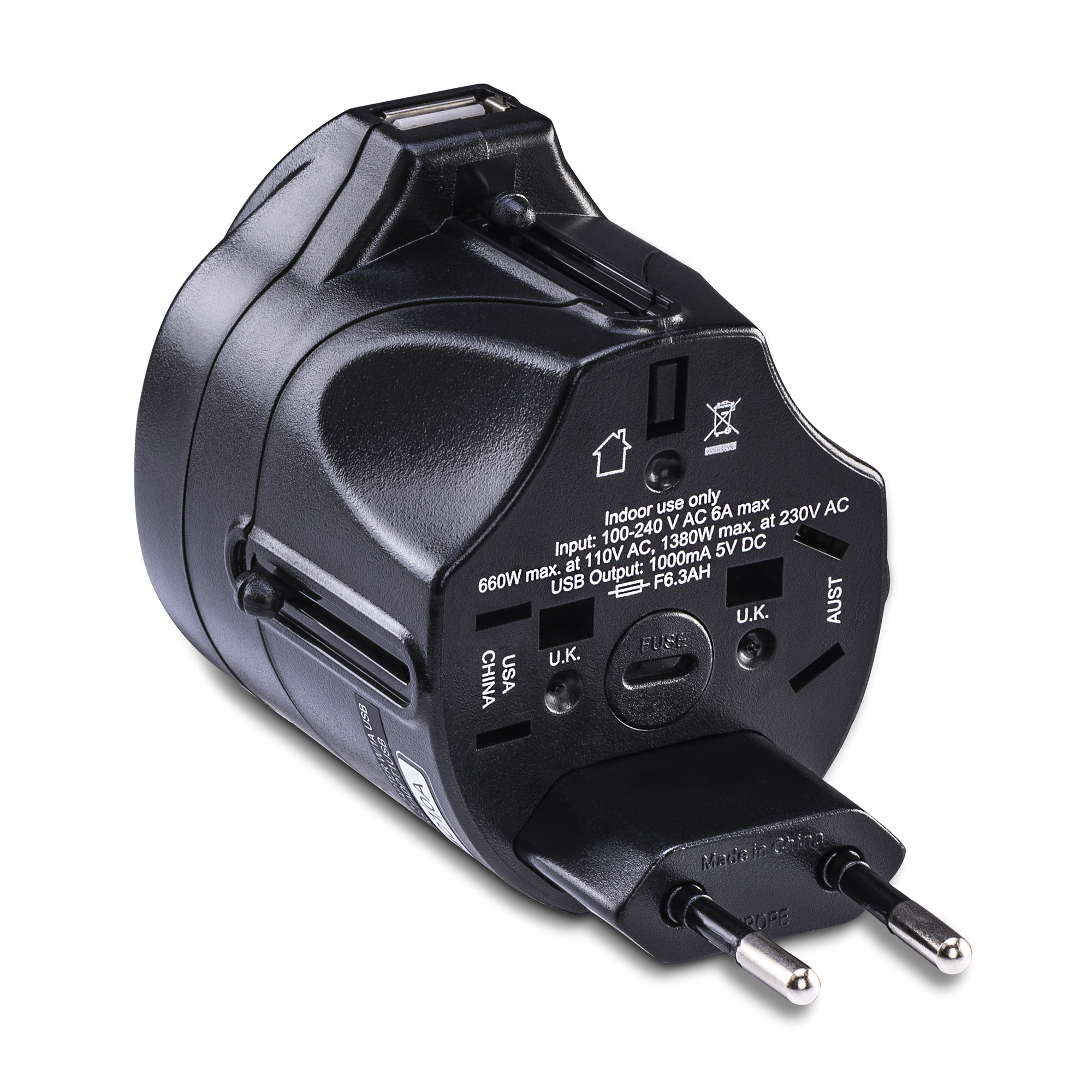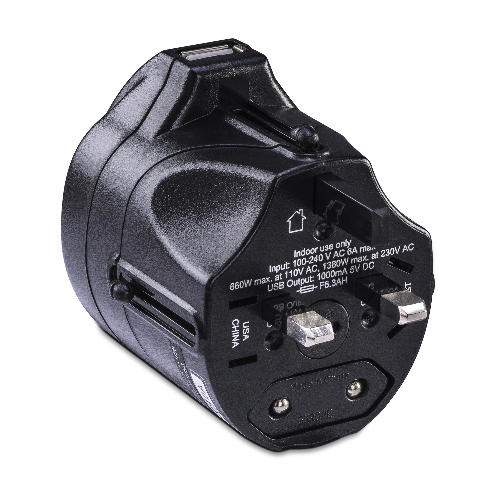 Works in more than 150 countries and is compatible with all type A, C, G & I outlets. - USB Charging Port