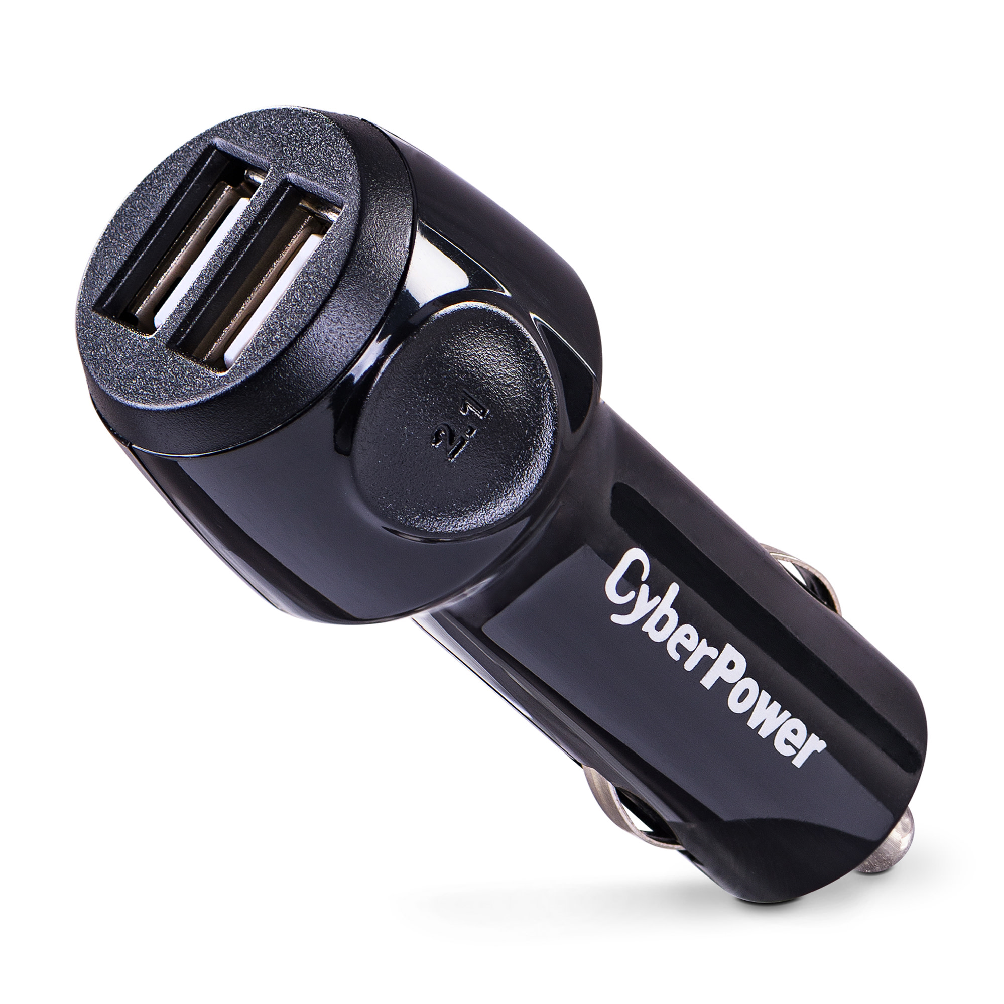 The CyberPower CPTDC2U USB Charger with two USB (2.1 Amp shared) charge ports quickly charges mobile devices and consumer electronics by plugging into your vehicle's 12V DC power outlet. The CPTDC2U charges tablets (including the iPad), smartphones, MP3 players, digital cameras, and similar products. This compact charger ensures easy portability and convenient use while you travel. The CPTDC2U is backed by a one-year limited warranty.
