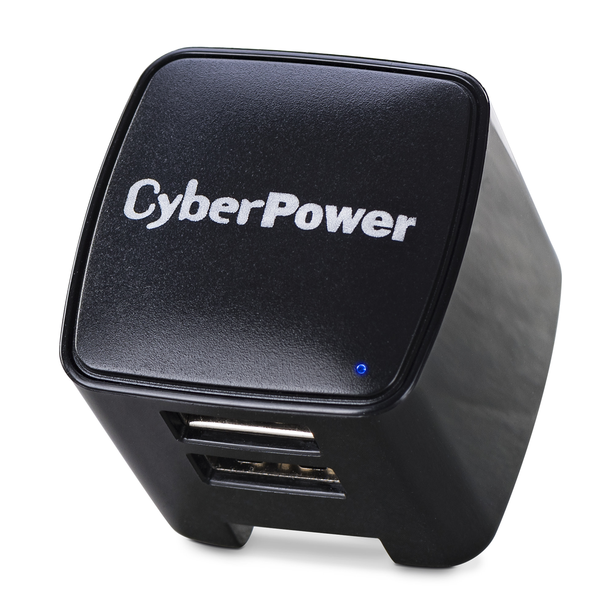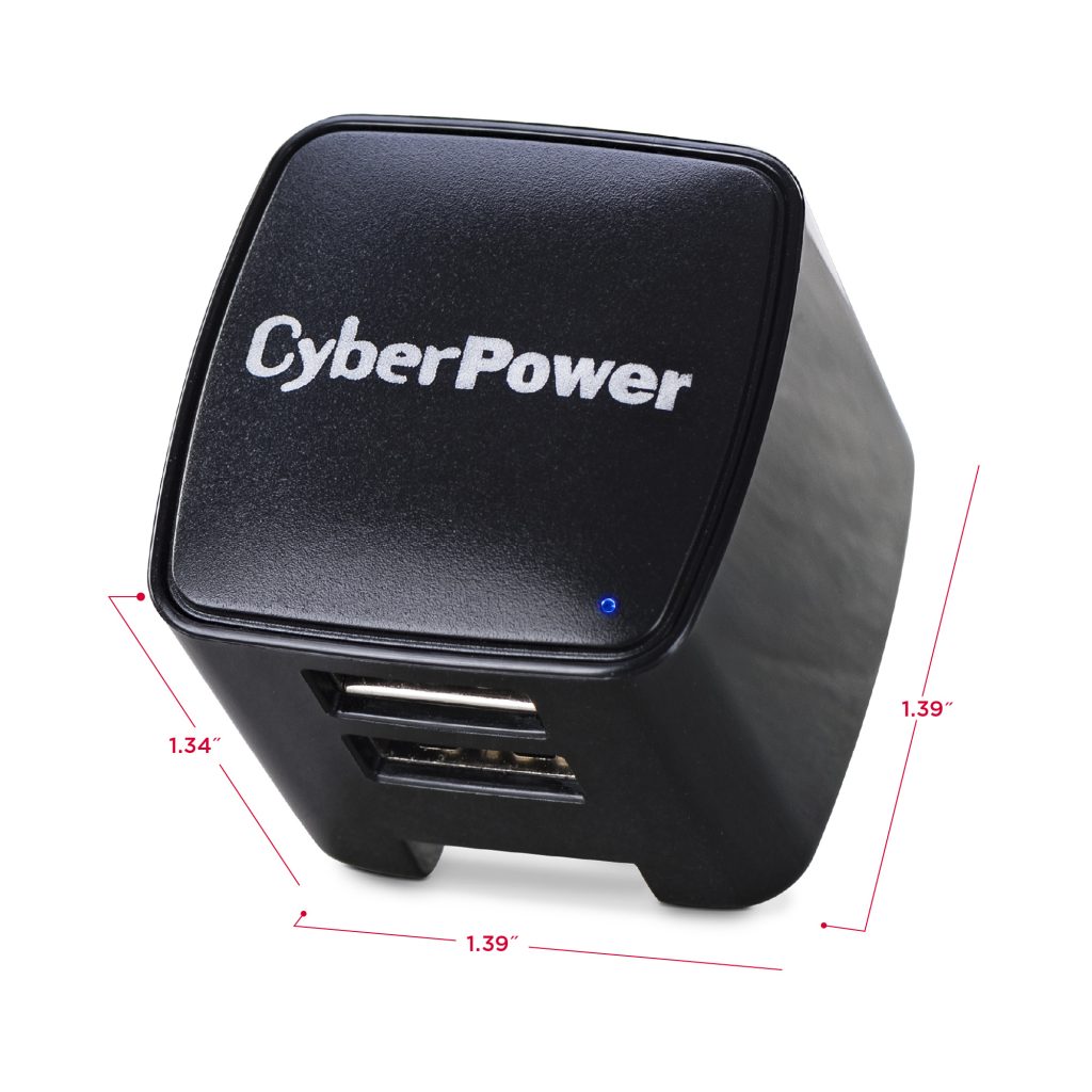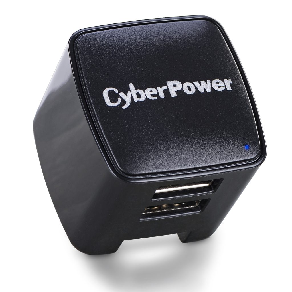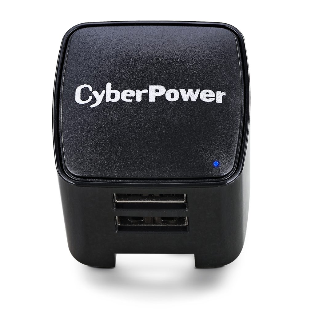 The CyberPower TR12U3A Dual USB Wall Charger, with 2 USB-A ports at 3.1 Amps of shared power, quickly charges and powers your mobile devices by plugging into a standard AC outlet. The folding AC plug and a compact design ensure easy portability and convenient use in your home and other locations. The 3.1 Amp USB ports power a smartphone, tablet, MP3 player, digital camera and many other USB powered devices. The TR12U3A is backed by a one-year limited warranty.