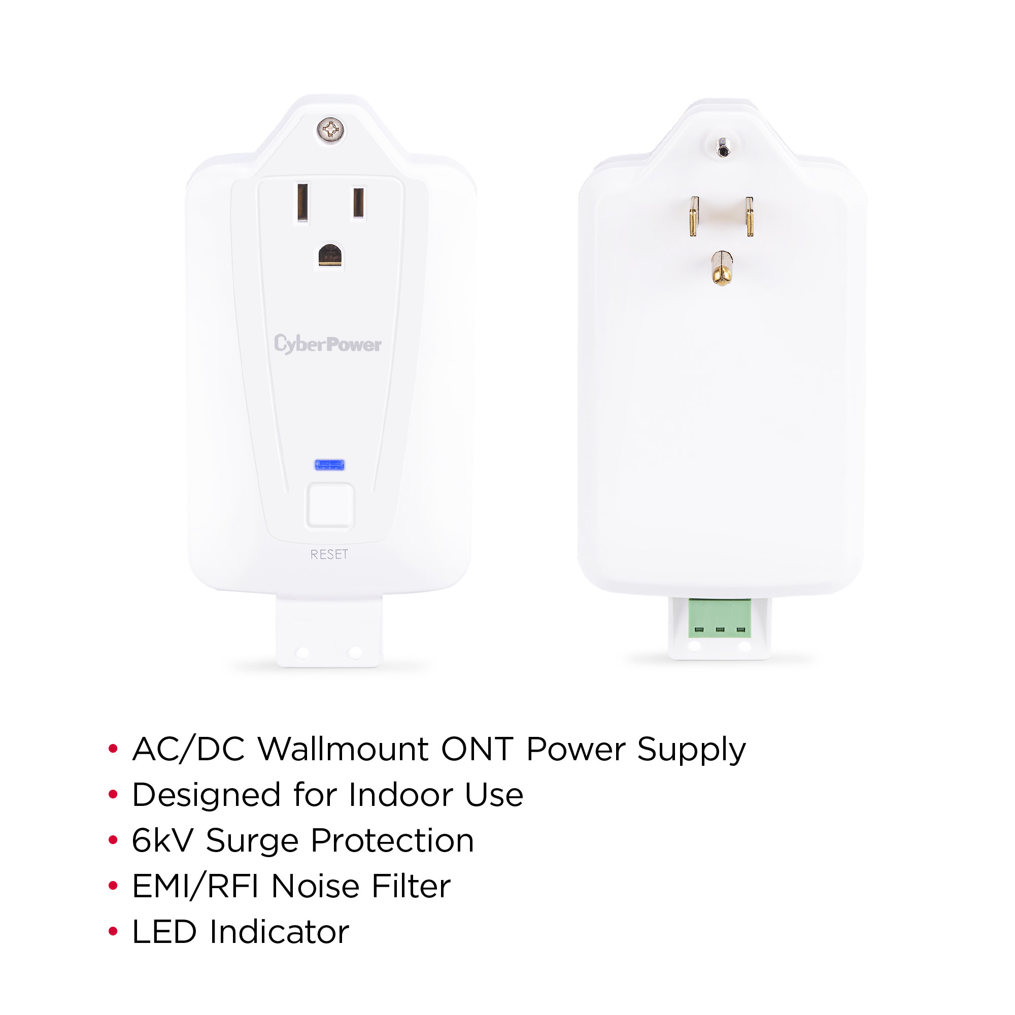Allows user to reset VDC power supply to the ONT device without having to disconnect the adapter from utility power. - Surge Protection