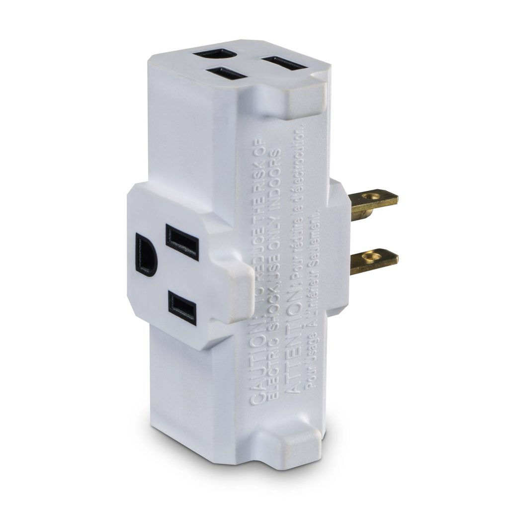 The GT300RC2 3-Sided Wall Tap from CyberPower expands one grounded outlet into three grounded outlets. The block-shaped 3-Sided Wall Tap features a single, standard spaced outlet on three different sides for versatile arrangement of plugs. CyberPower wall taps come in a variety of designs for providing additional outlets.