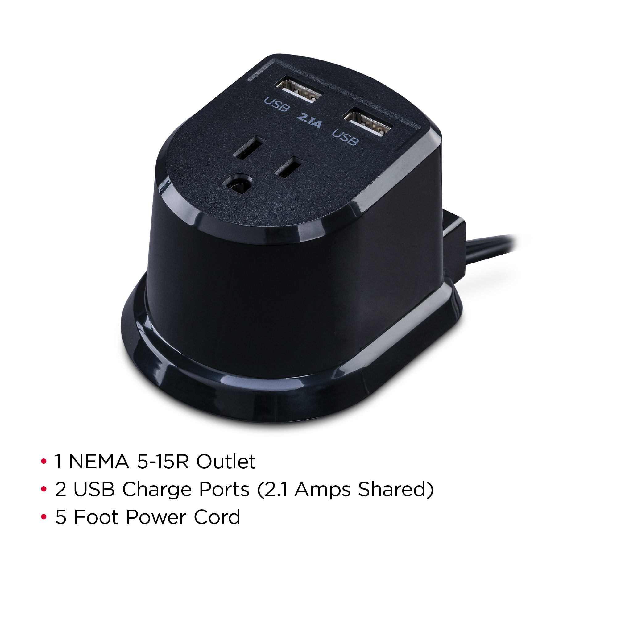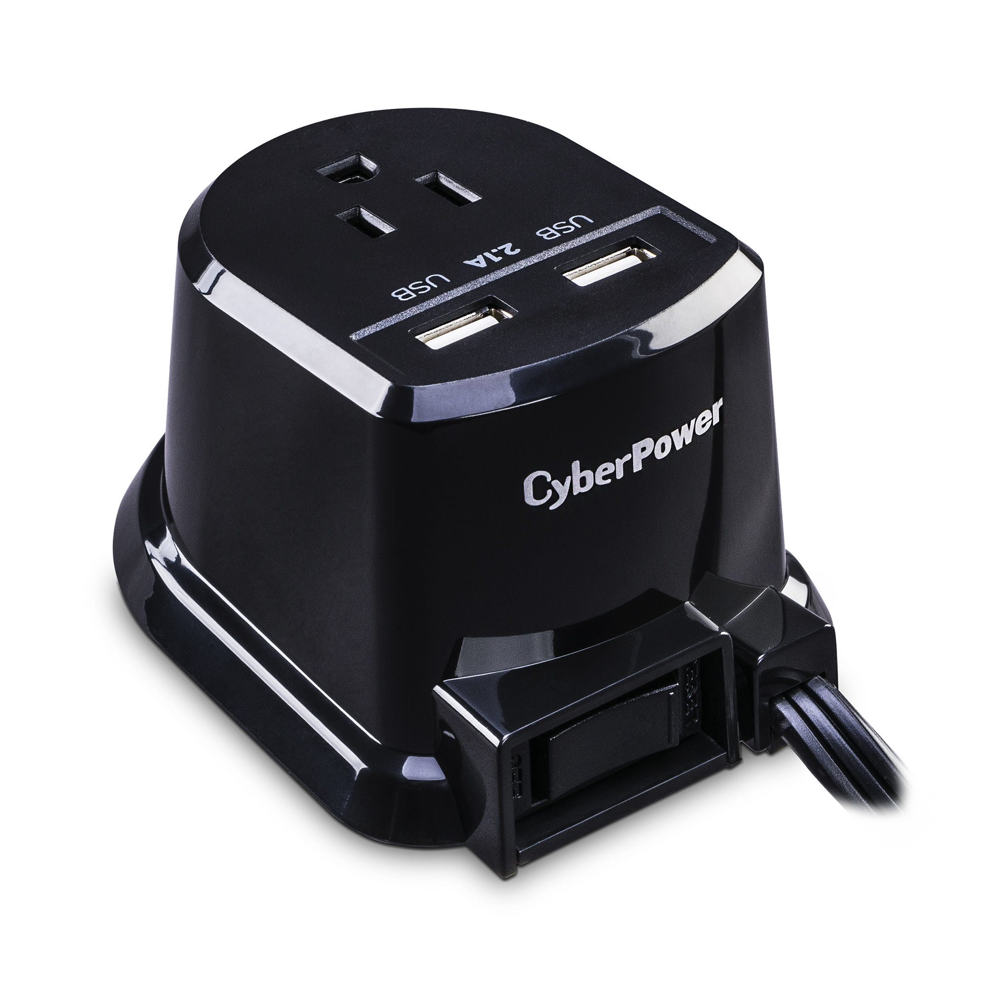 With two USB charge ports (2.1 Amp shared) and a three-prong outlet (NEMA 5-15R), the CyberPower CSP105U Dual USB Power Station provides quick charging power in a compact model. The CSP105U fits easily on a desk, end table, or nightstand. The USB ports offer power to swiftly recharge tablets and smartphones. The CSP105U comes with a 5 ft. power cord and a one-year warranty.