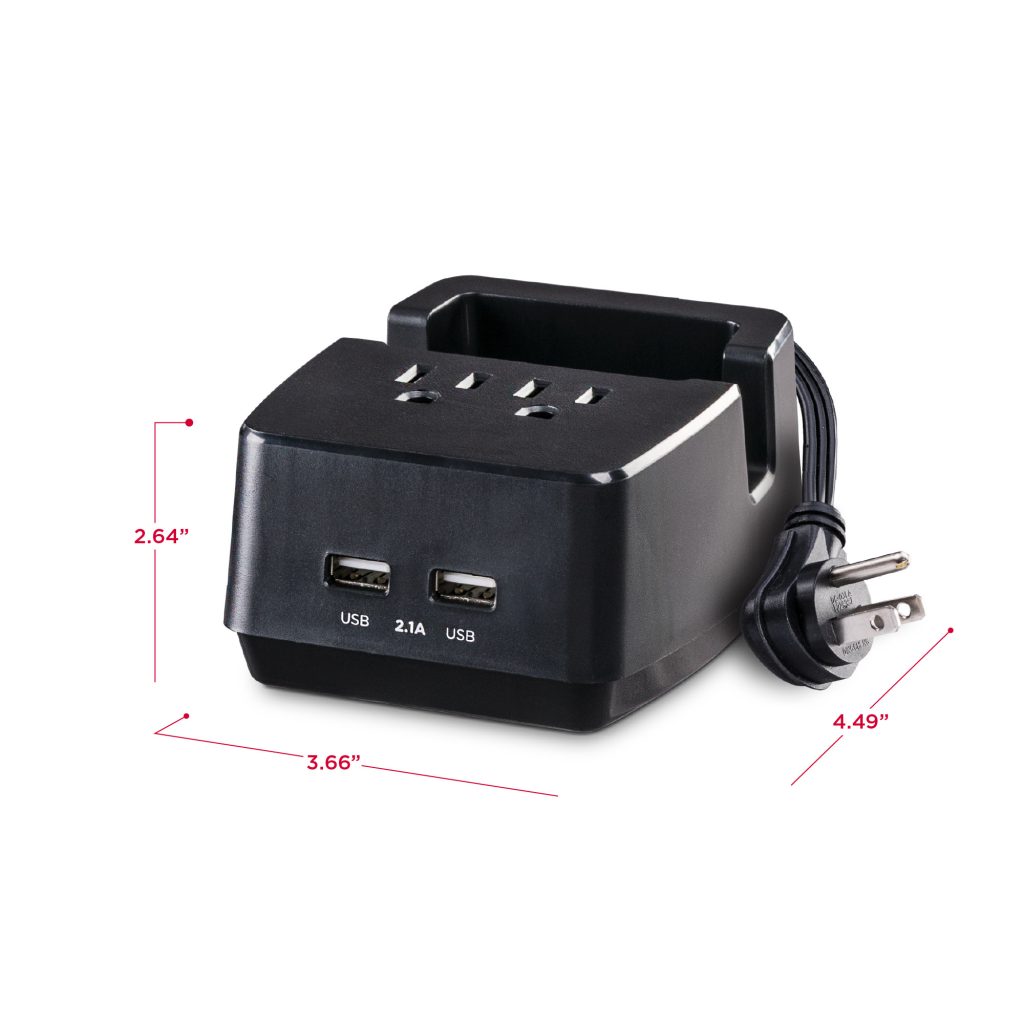 Rapidly charge and power USB devices such as tablets (including iPad), smartphones, MP3 players, and other mobile accessories. - Built-In Device Cradle