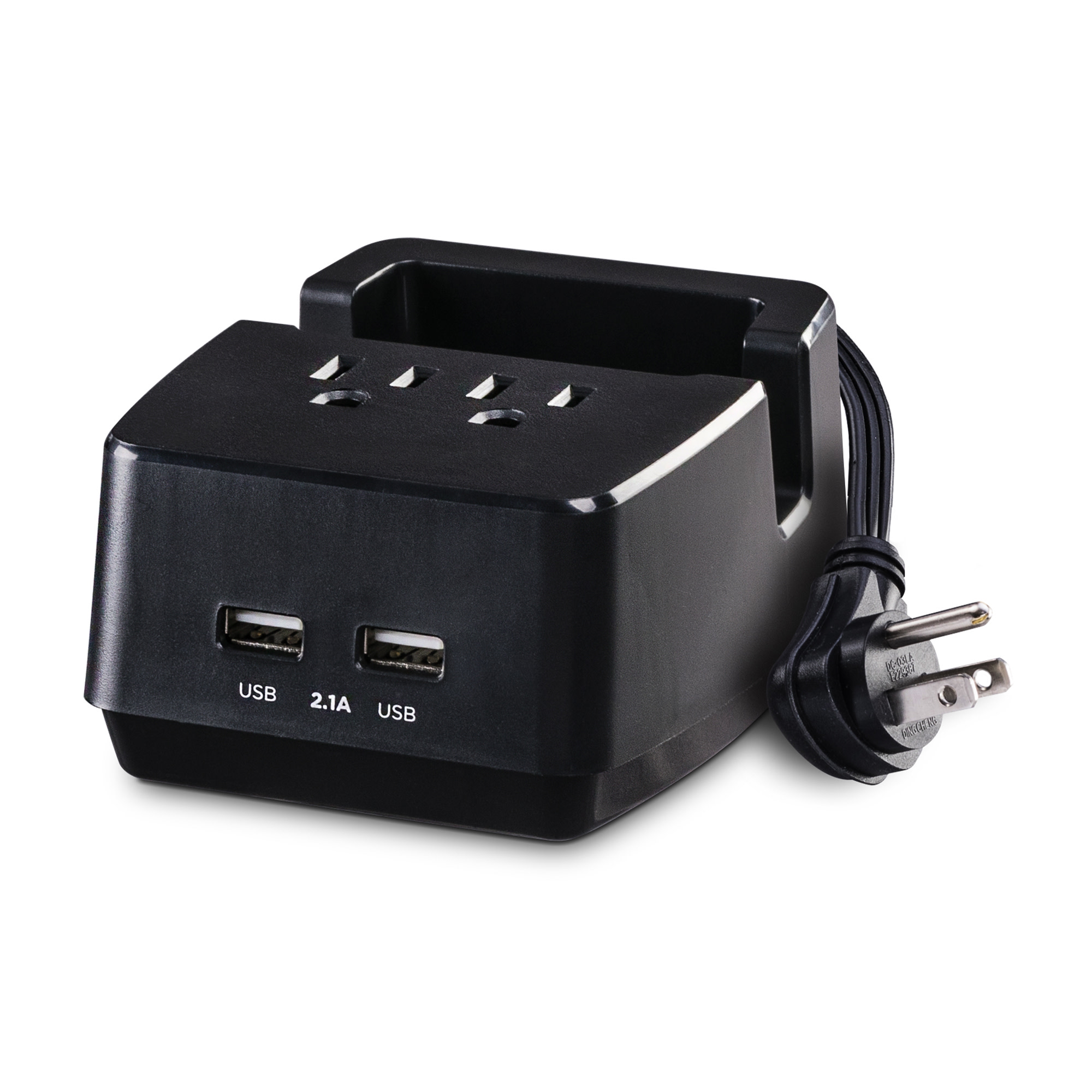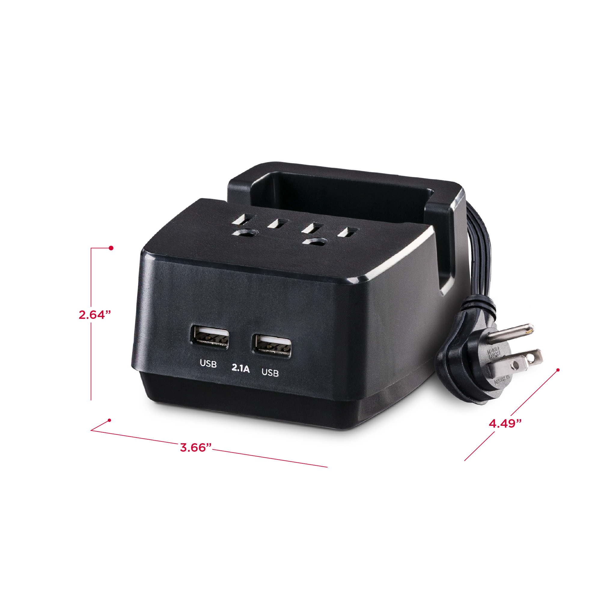 Supports your smartphone or tablet as it charges. - Grounded Three-Prong Outlets