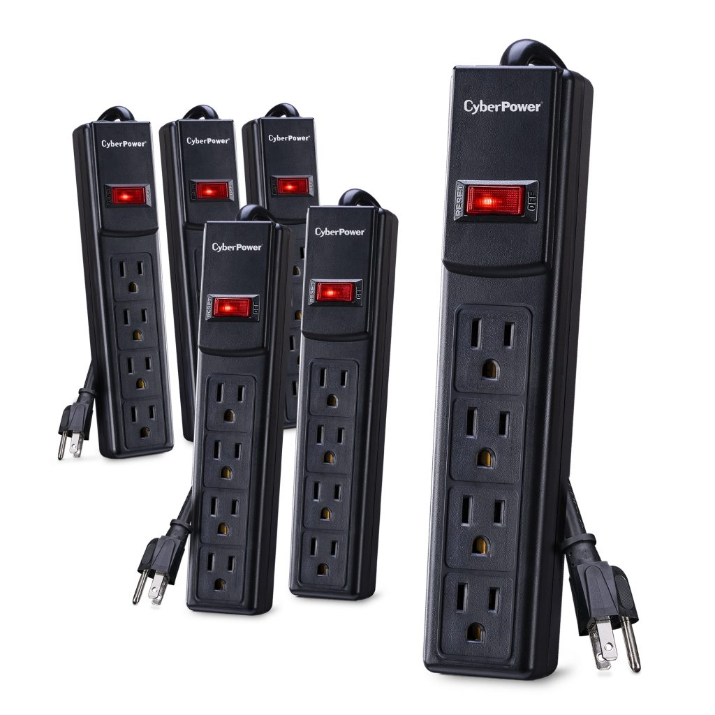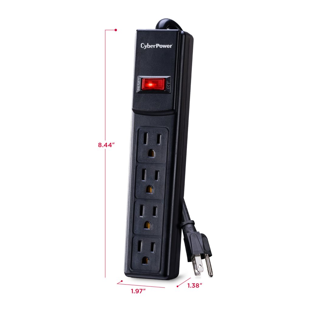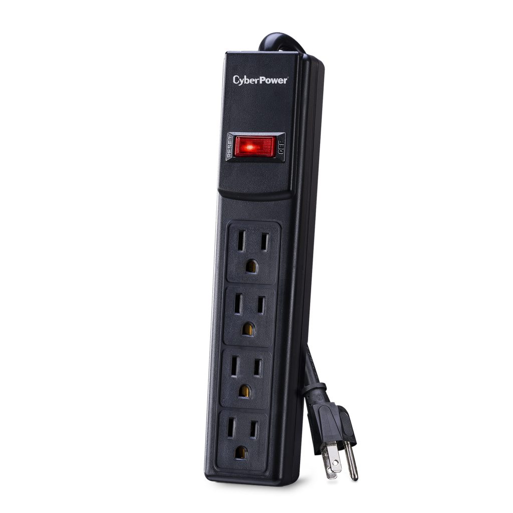 The CyberPower Essential Surge Protector CSB404 offers vital surge protection for common home and office devices such as computers and electronics. It prevents spikes in energy caused by storms and electrical power surges from reaching your electronic equipment. The CSB404 provides 450 joules of protection with 4 outlets and a power cord (4 ft.).