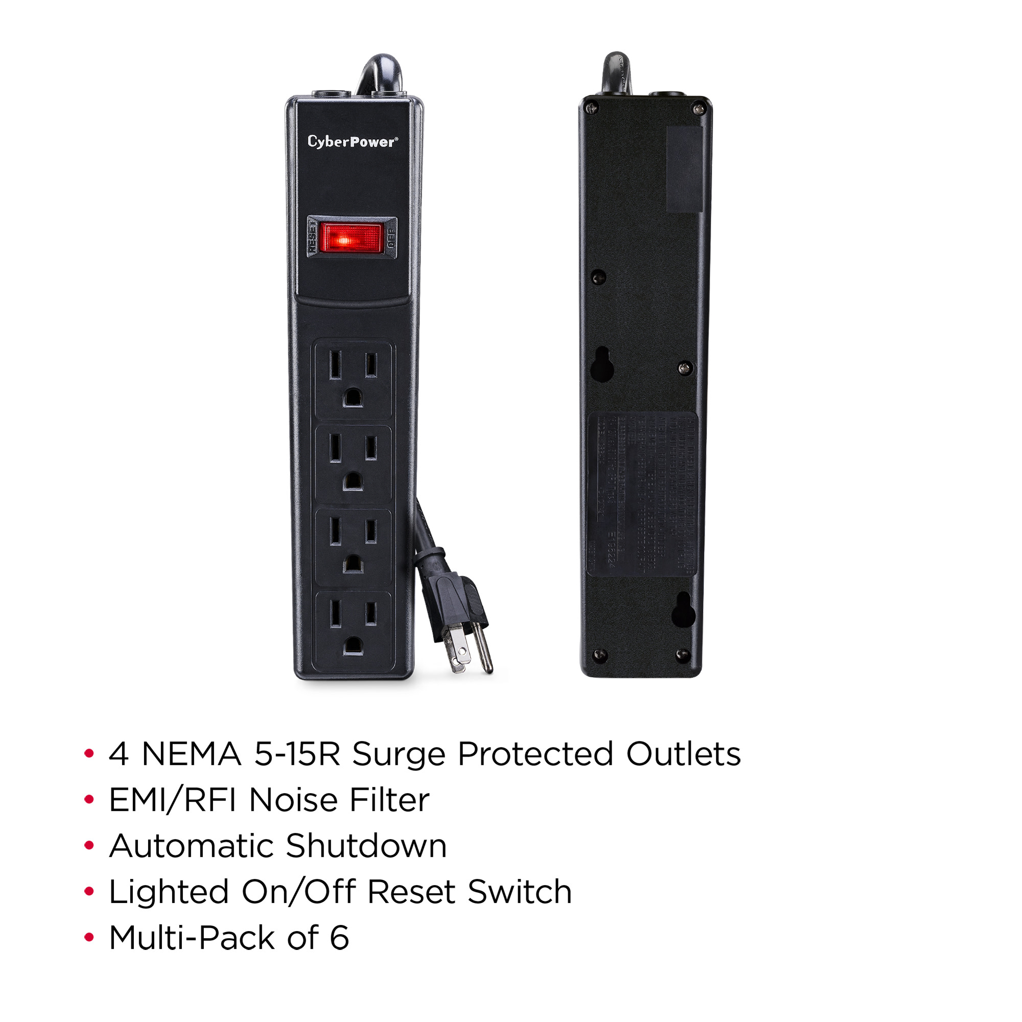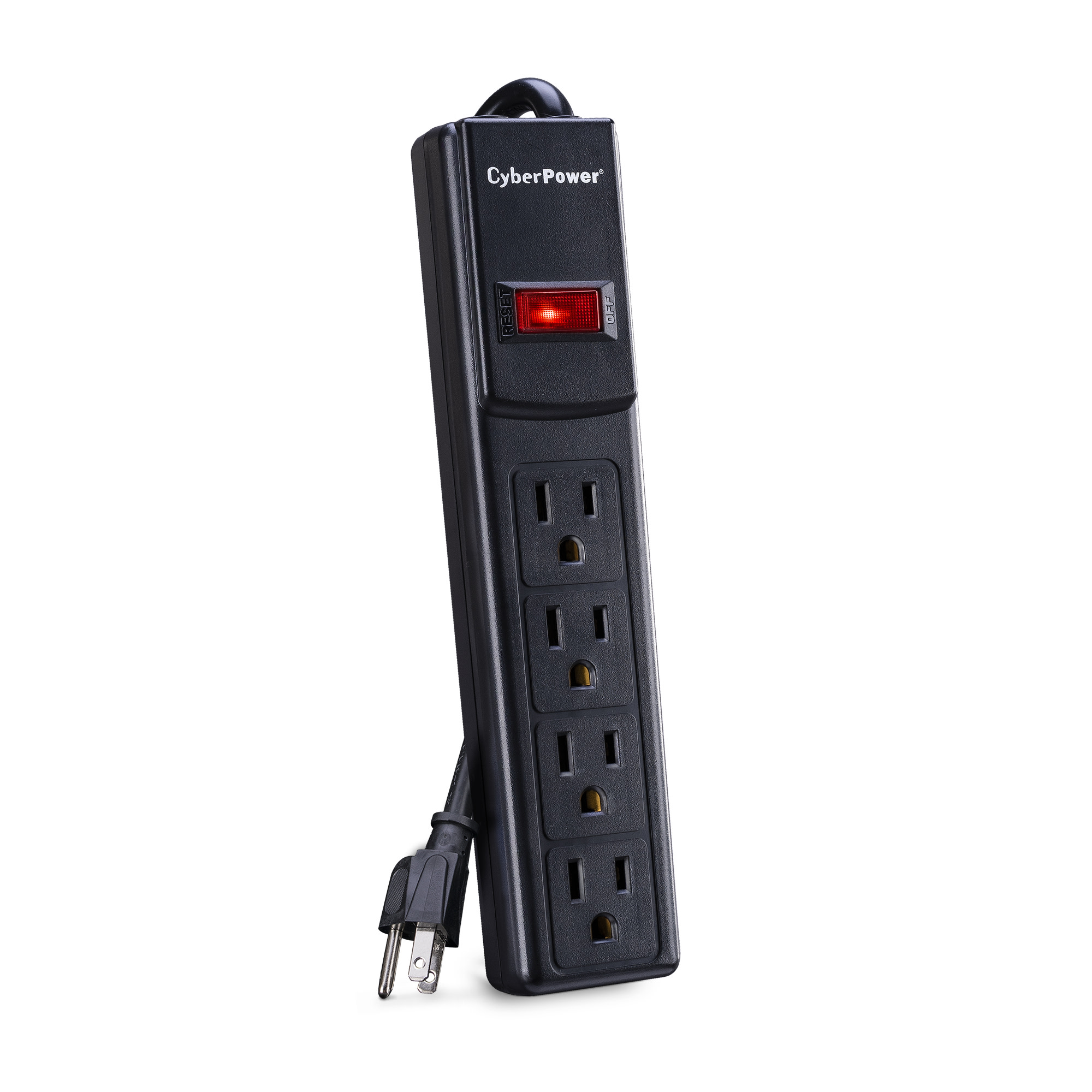 The CyberPower Essential Surge Protector CSB404 offers vital surge protection for common home and office devices such as computers and electronics. It prevents spikes in energy caused by storms and electrical power surges from reaching your electronic equipment. The CSB404 provides 450 joules of protection with 4 outlets and a power cord (4 ft.).