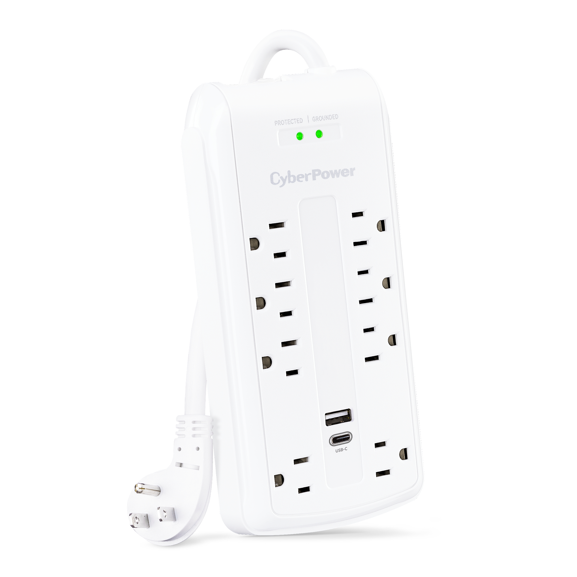 The 8-outlet surge protector in this combo pack provides 2700 joules of protection to prevent damaging power spikes and surges from reaching your electronics. It features 2 USB ports (one 2.4A USB-A port and one 20W USB-C port with Power Delivery) that will charge USB enabled mobile devices and small electroncs. The P806UCPD has a 6 foot, power cord, a low-profile plug that fits in tight spaces, LEDs that indicate protected and grounded status, and a One Year Limited Warranty.