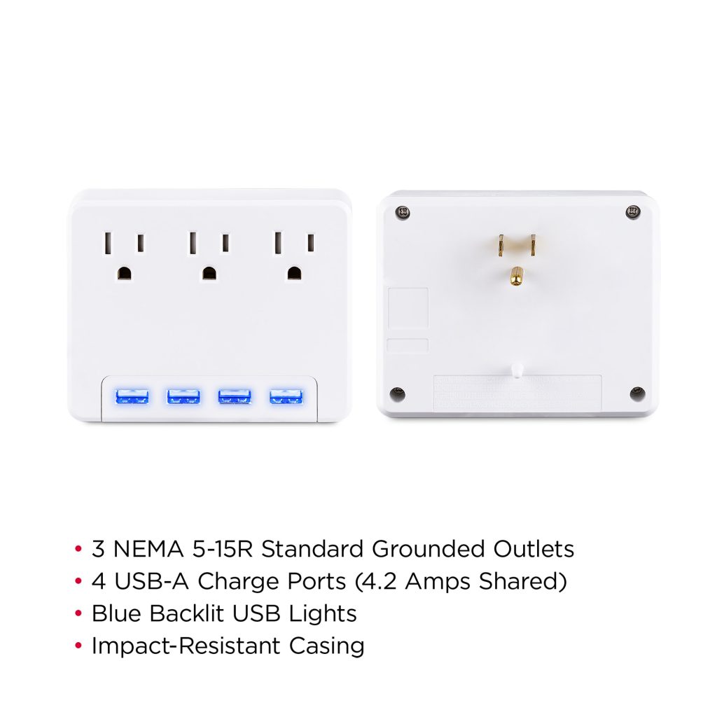 (1) 10 Outlet Surge Protector Power Strip w/USB, (1) 5 Outlet Surge Protector Power Strip w/USB, (1) 3 Outlet Wall Tap w/USB