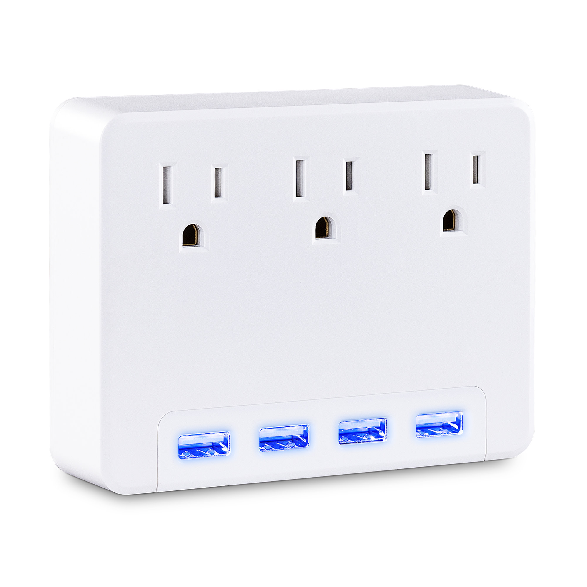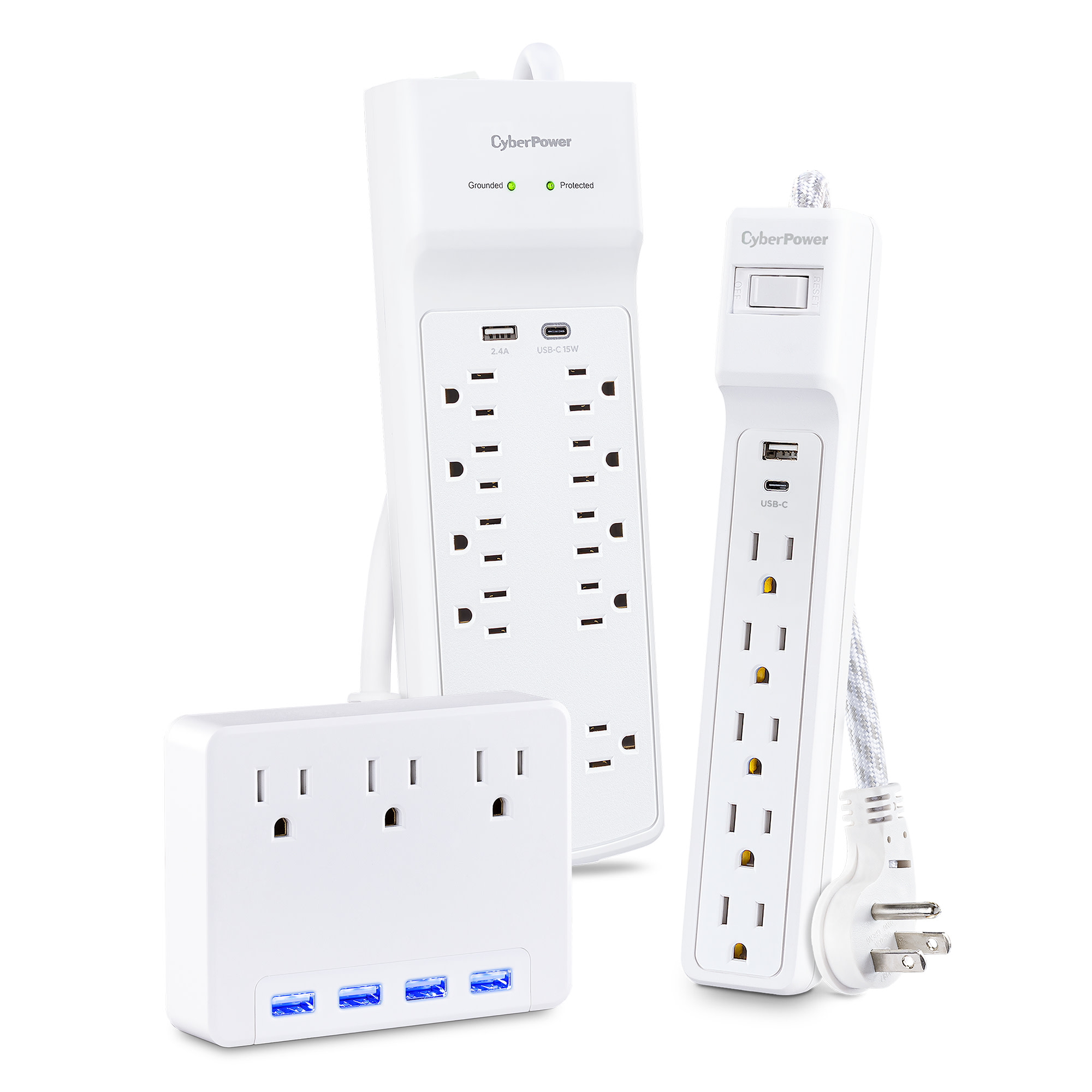 (1) 10 Outlet Surge Protector Power Strip w/USB, (1) 5 Outlet Surge Protector Power Strip w/USB, (1) 3 Outlet Wall Tap w/USB
