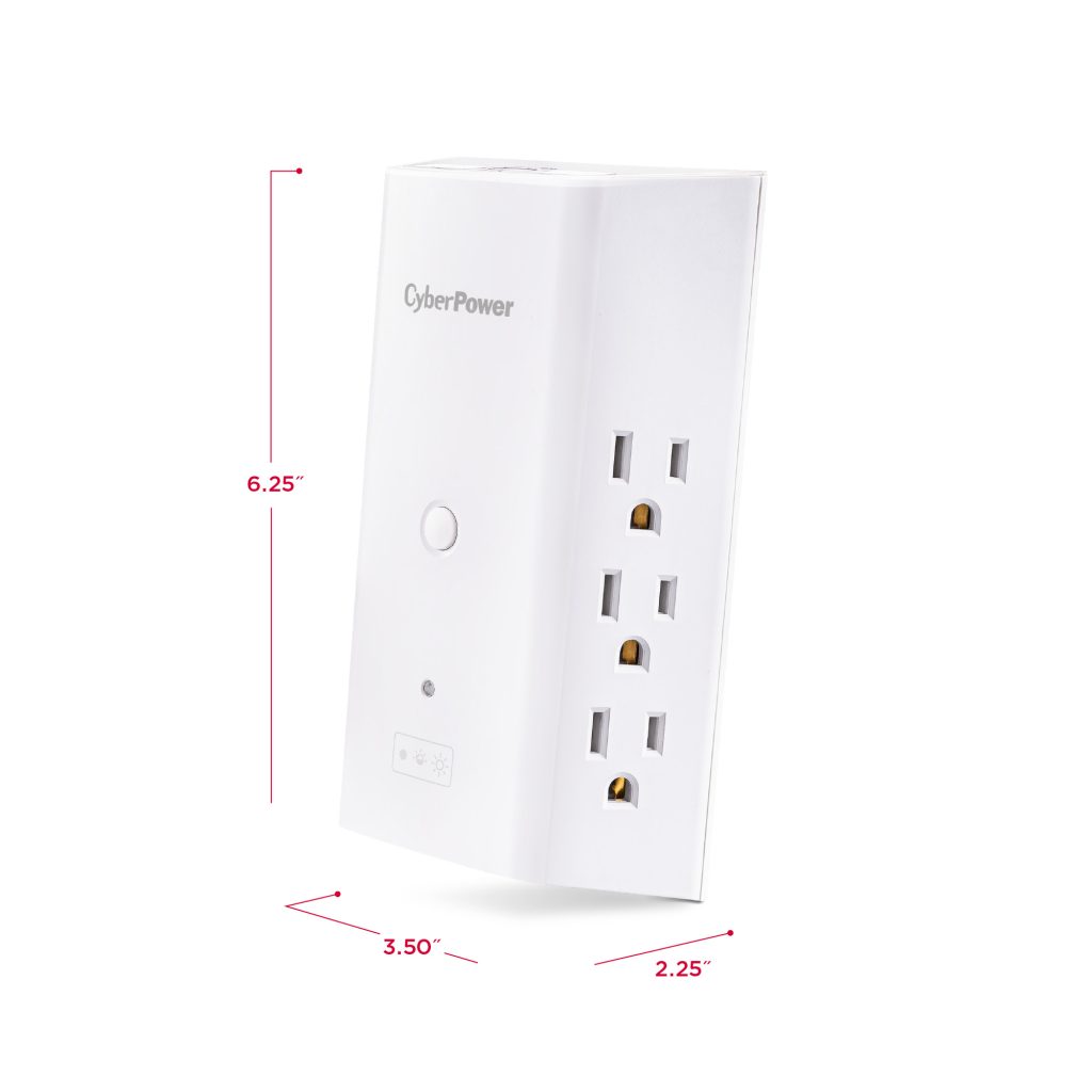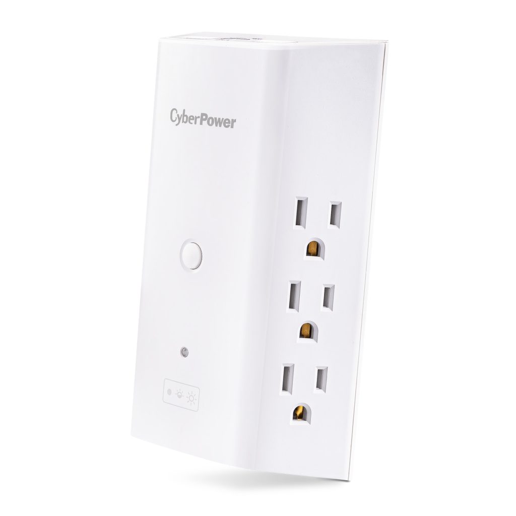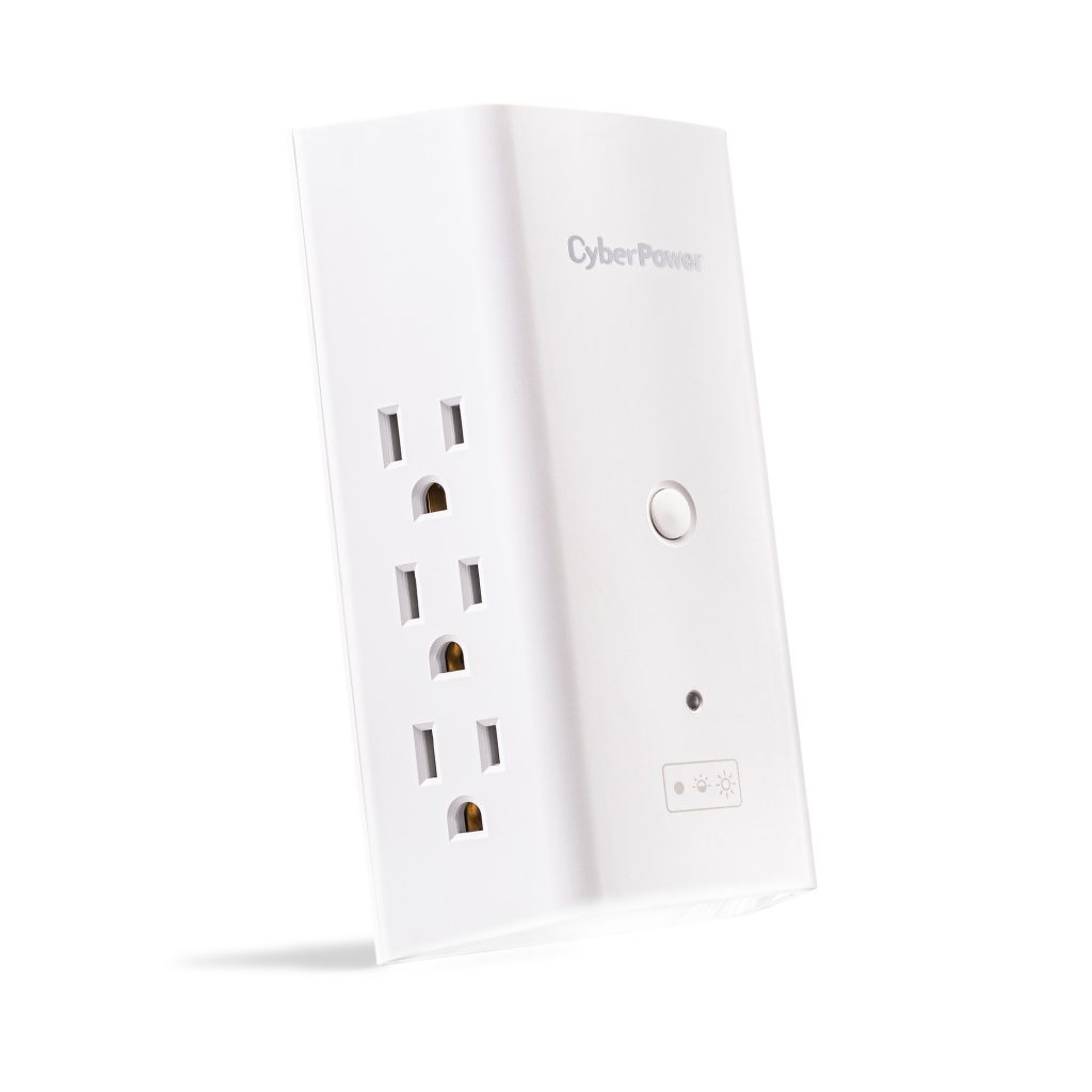 The CyberPower MP1097WW two-pack of P6WUCL Wall-tap Surge Protectors with USB charging safeguards common home and office devices, such as computers and electronics, by absorbing spikes in energy caused by storms and electrical power surges. It provides 900 joules of protection, has 6 surge-protected AC outlets, two USB-A ports with 2.4 Amps shared power output and one USB-C port rated at 18W PD to charge mobile, USB enabled devices. The CyberPower P6WUCL features a photo sensor activated light and an impact-resistant casing.