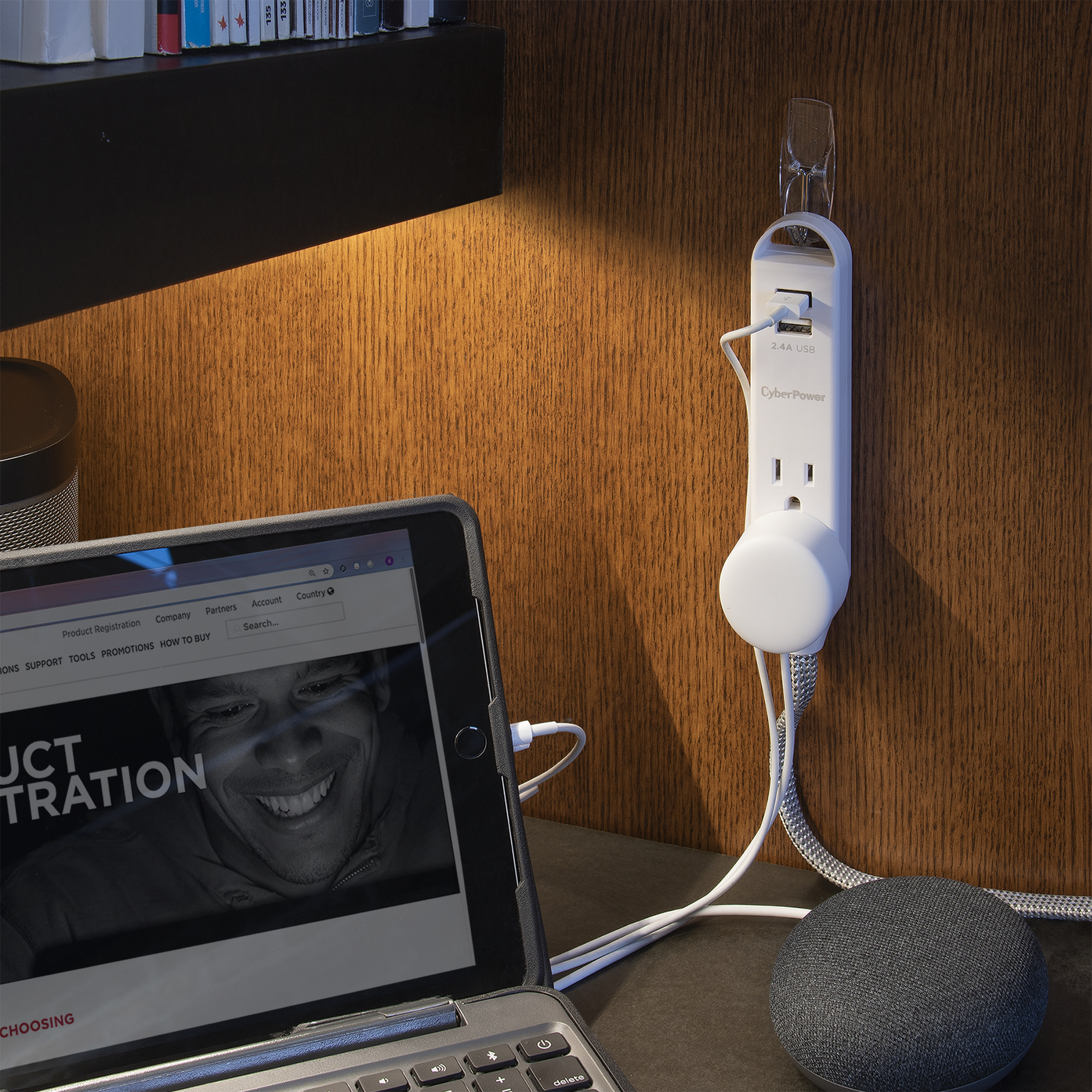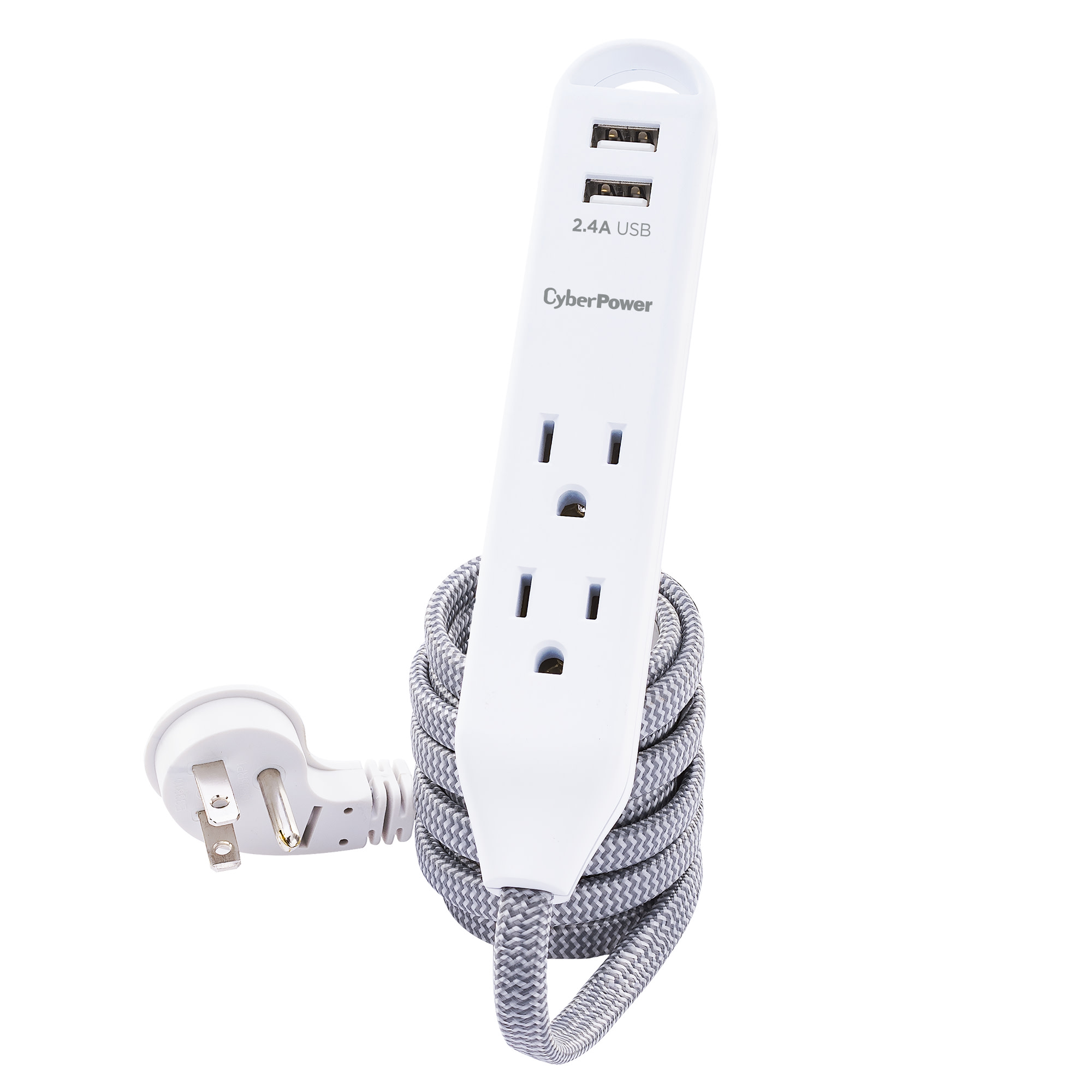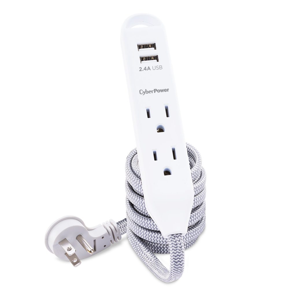 Extend power to where you want it! Set up a temporary personal power station to charge multiple mobile devices using the two USB ports, or power devices with the three AC outlets. This Reach & Charge™ USB & AC Power Cord provides three standard-spaced surge-protected outlets and two 2.4A (shared) USB charging ports, perfect for mobile devices, fitness trackers, and smart home devices. The GC306U has a stylish, braided, 6' cord that prevents tangles, and an integrated loop for a convenient and quick mounting solution. A low-profile plug fits in tight spaces to keep power within reach.