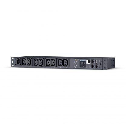 The PDU71004 supports inputs between 100-240V and includes 8 IEC-320 C13 outlets. Other features include a rack mount design (1U), built-in web interface (RJ-45 ethernet connection), interactive digital display and power event notifications. The CyberPower PDU71004 is protected by a three-year limited warranty.