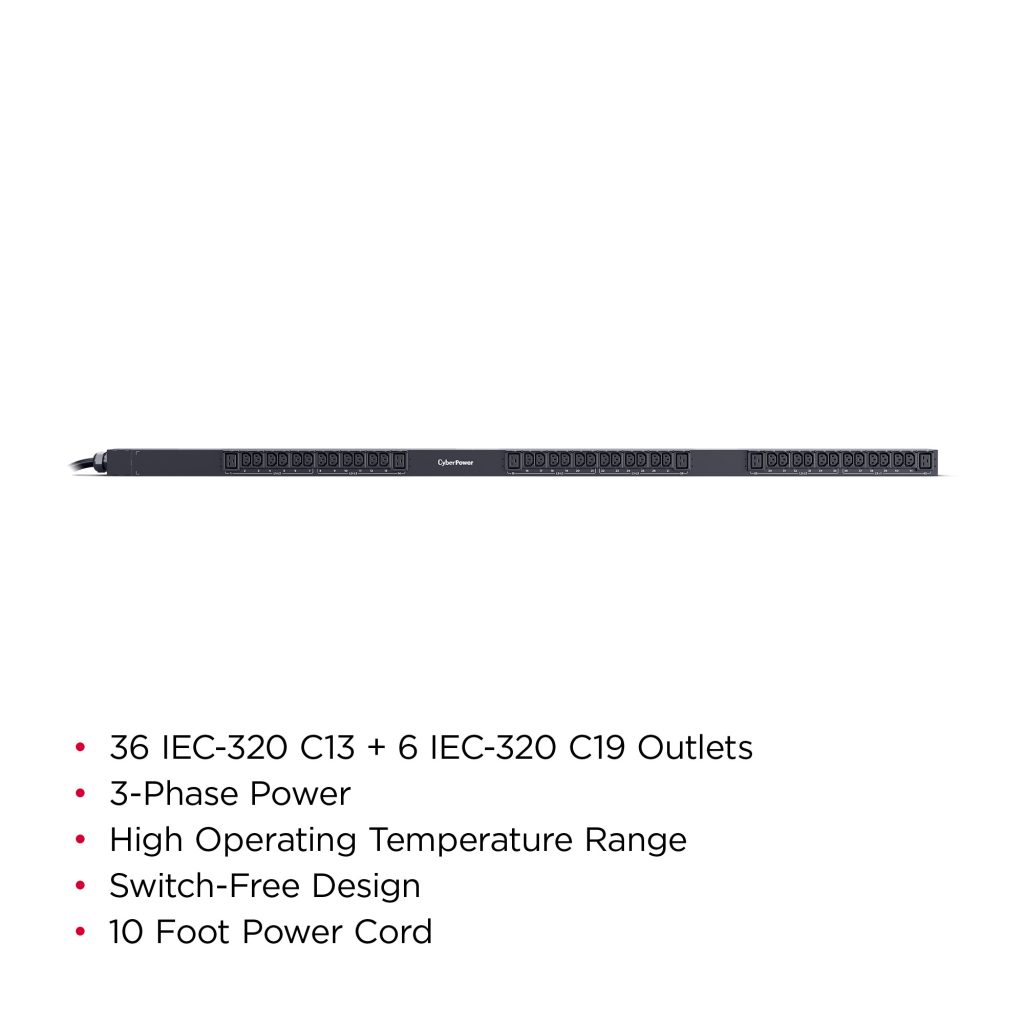 The PDU13103 supports a 200V-240V 20A input, includes 42 IEC outlets, and provides a maximum output load of 5.7kW. The CyberPower PDU13103 is protected by a three-year limited warranty.