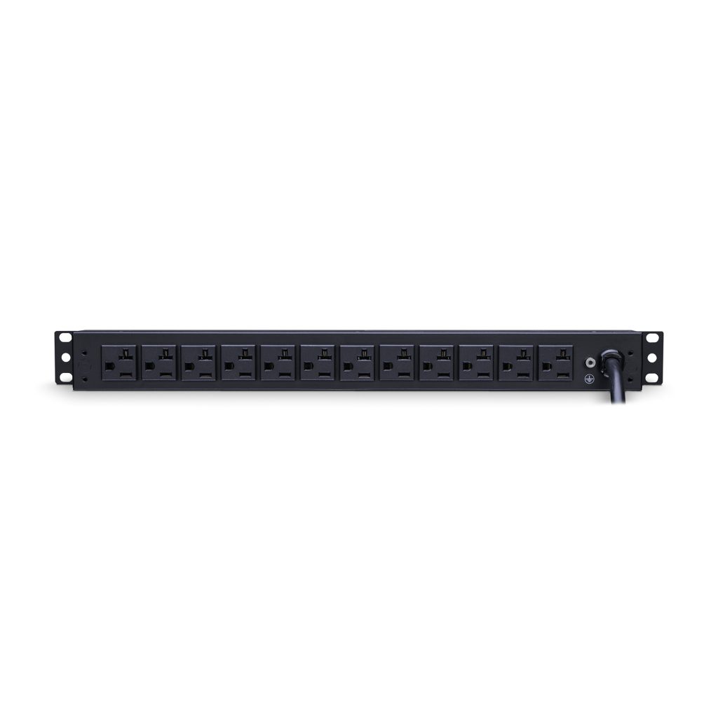 The CyberPower PDU20B12R, a 12-outlet (rear) rackmount basic power distribution unit (PDU), provides 100 – 100 – 125 V 20A output. It distributes power to 12 NEMA 5-20R receptacles from a single NEMA 5-20P input with unfiltered electrical pass-through. Designed for datacenters and other electrically demanding applications, the PDU20B12R has a rugged, industrial-grade metal housing and a 15-foot AC power cord. It can be mounted either horizontally or vertically, includes a cord retention tray, and is ETL/RoHS certified. A limited lifetime warranty covers defects in materials and workmanship in the product under normal use and conditions.