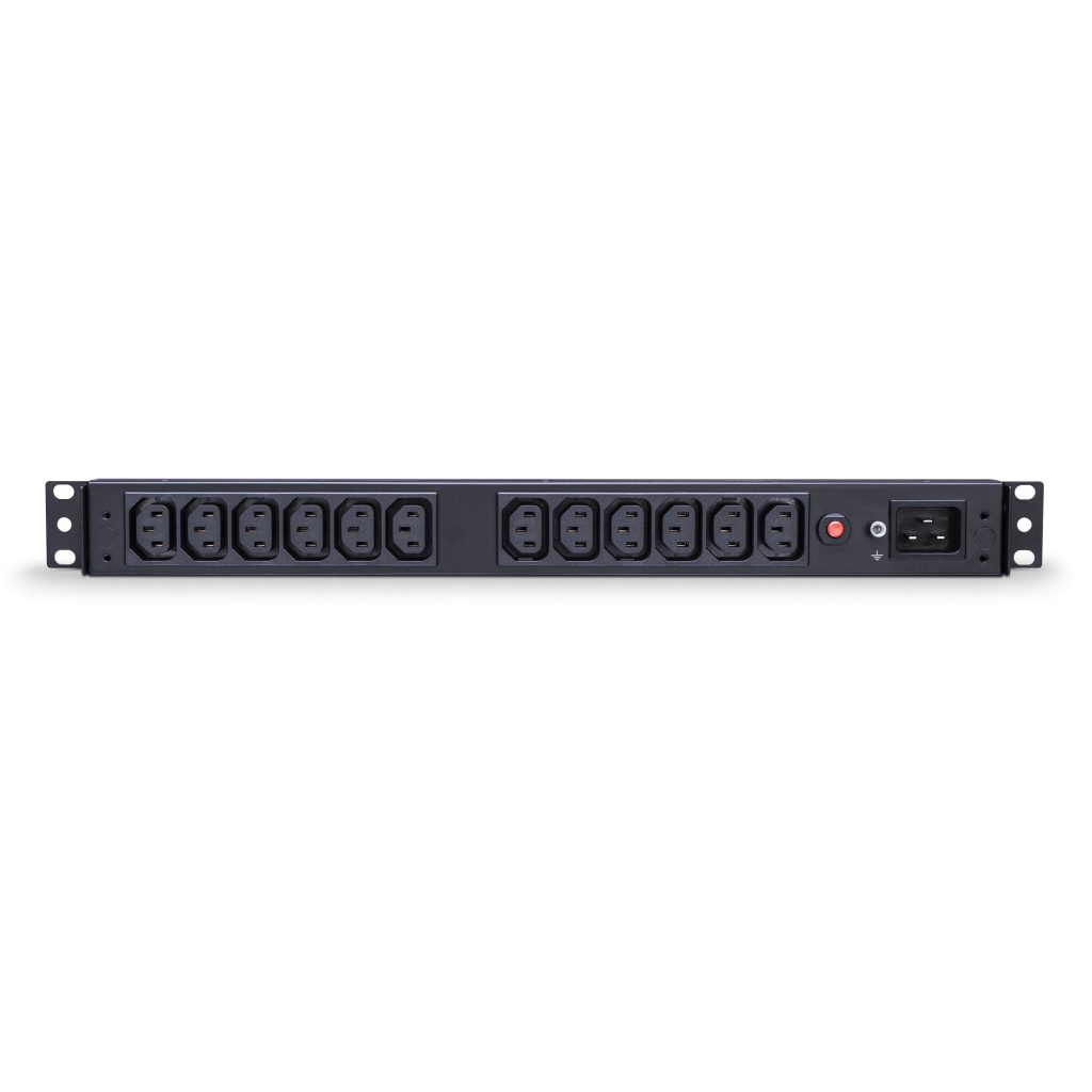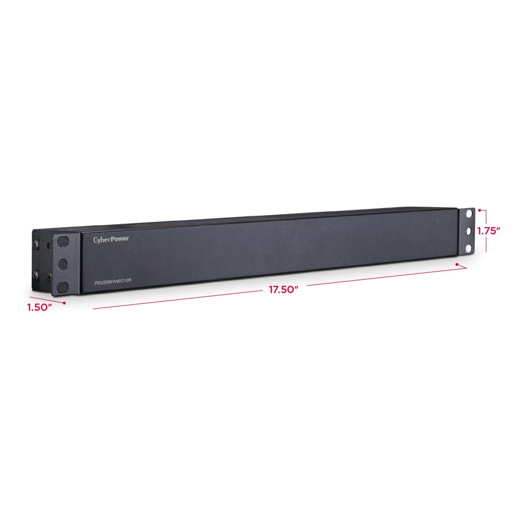 The CyberPower PDU20BHVIEC12R, a 12-outlet (rear) rackmount basic power distribution unit (PDU), provides 208V/230V 20A output. It distributes power to 12 IEC-320 C13 receptacles from a single IEC-320 C20 plug with unfiltered electrical pass-through. Designed for datacenters and other electrically demanding applications, the PDU20BHVIEC12R has rugged, industrial-grade metal housing and a 10-foot AC power cord. It can be mounted either horizontally or vertically, includes a cord retention tray, and is ETL/RoHS certified. A limited lifetime warranty covers defects in materials and workmanship in the product under normal use and conditions.