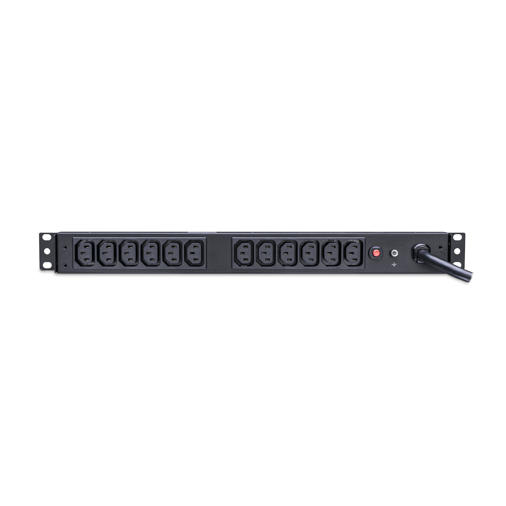 The CyberPower PDU20BHVT12R, a 12-outlet (rear) rackmount basic power distribution unit (PDU), provides 208V/230V 20A output. It distributes power to 12 IEC-320 C13 receptacles from a single NEMA L6-20P twist lock plug with unfiltered electrical pass-through. Designed for datacenters and other electrically demanding applications, the PDU20BHVT12R has rugged, industrial-grade metal housing and a 10-foot AC power cord. It can be mounted either horizontally or vertically, includes a cord retention tray, and is ETL/RoHS certified. A limited lifetime warranty covers defects in materials and workmanship in the product under normal use and conditions.