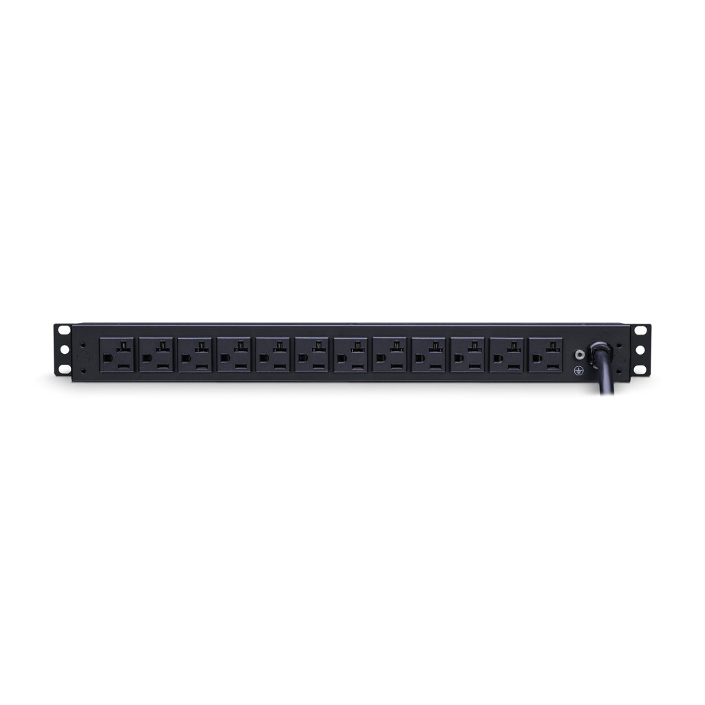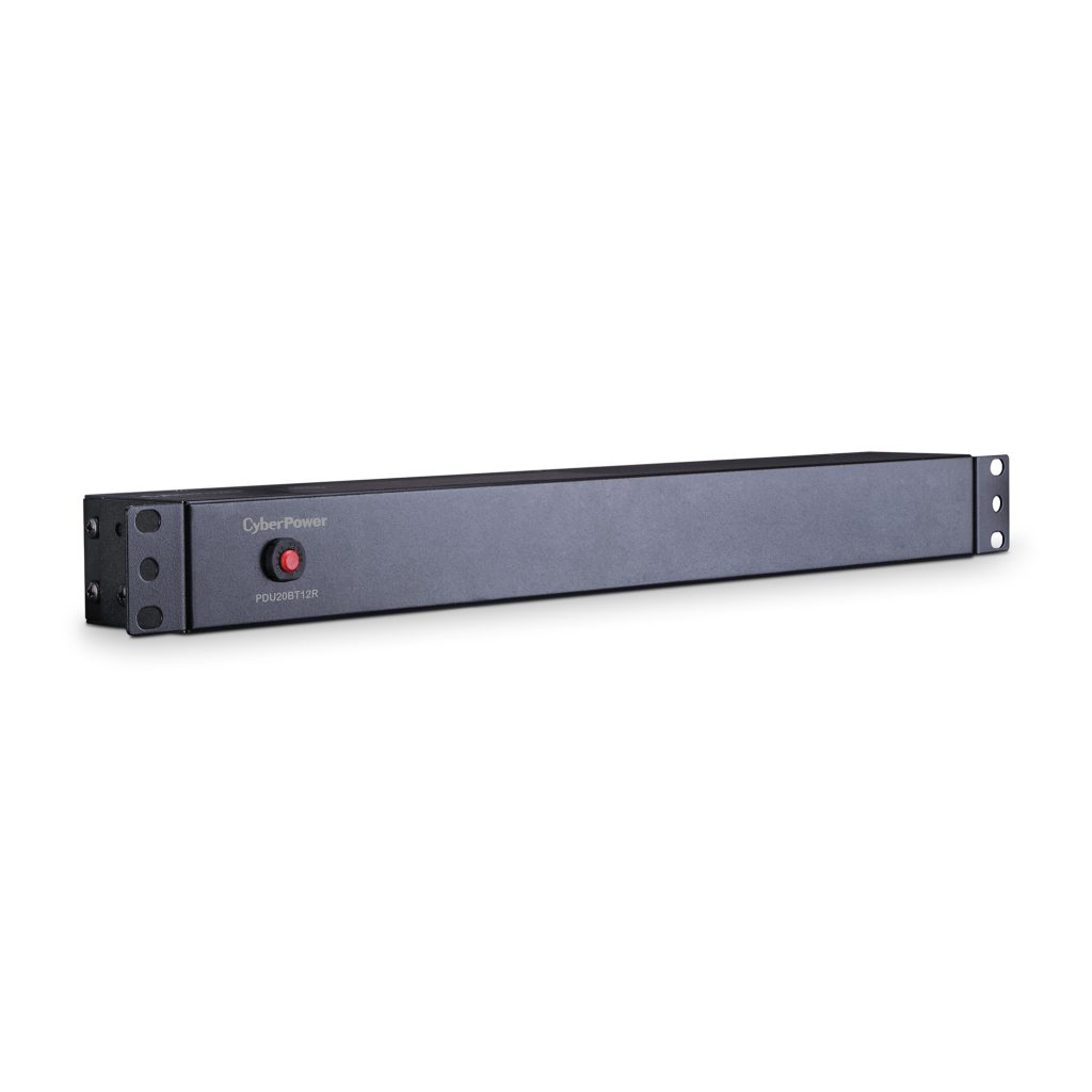 The CyberPower PDU20BT12R, a 12-outlet (rear) rackmount basic power distribution unit (PDU), provides 100 – 125 V 20A output. It distributes power to 12 NEMA 5-20R receptacles from a single NEMA L5-20P twist lock plug with unfiltered electrical pass-through. Designed for datacenters and other electrically demanding applications, the PDU20BT12R has rugged, industrial-grade metal housing and a 15-foot AC power cord. It can be mounted either horizontally or vertically, includes a cord retention tray, and is ETL/RoHS certified. A limited lifetime warranty covers defects in materials and workmanship in the product under normal use and conditions.
