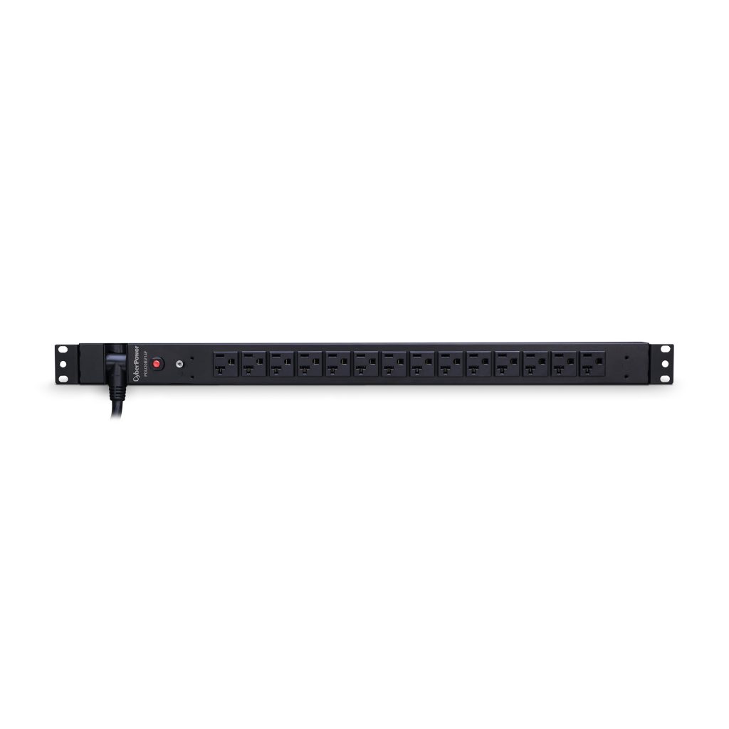The CyberPower PDU20BV14F, a 14-outlet (front) 0U vertical rackmount basic power distribution unit (PDU), provides 100 – 125 V 20A output. It distributes power to 14 NEMA 5-20R receptacles from a single NEMA 5-20P plug with unfiltered electrical pass-through. Designed for datacenters and other electrically demanding applications, the PDU20BV14F has rugged, industrial-grade metal housing and a 10-foot AC power cord. It supports vertical, horizontal, and wall mount installation, includes a cord retention tray, and is ETL/RoHS certified. A limited lifetime warranty covers defects in materials and workmanship in the product under normal use and conditions.