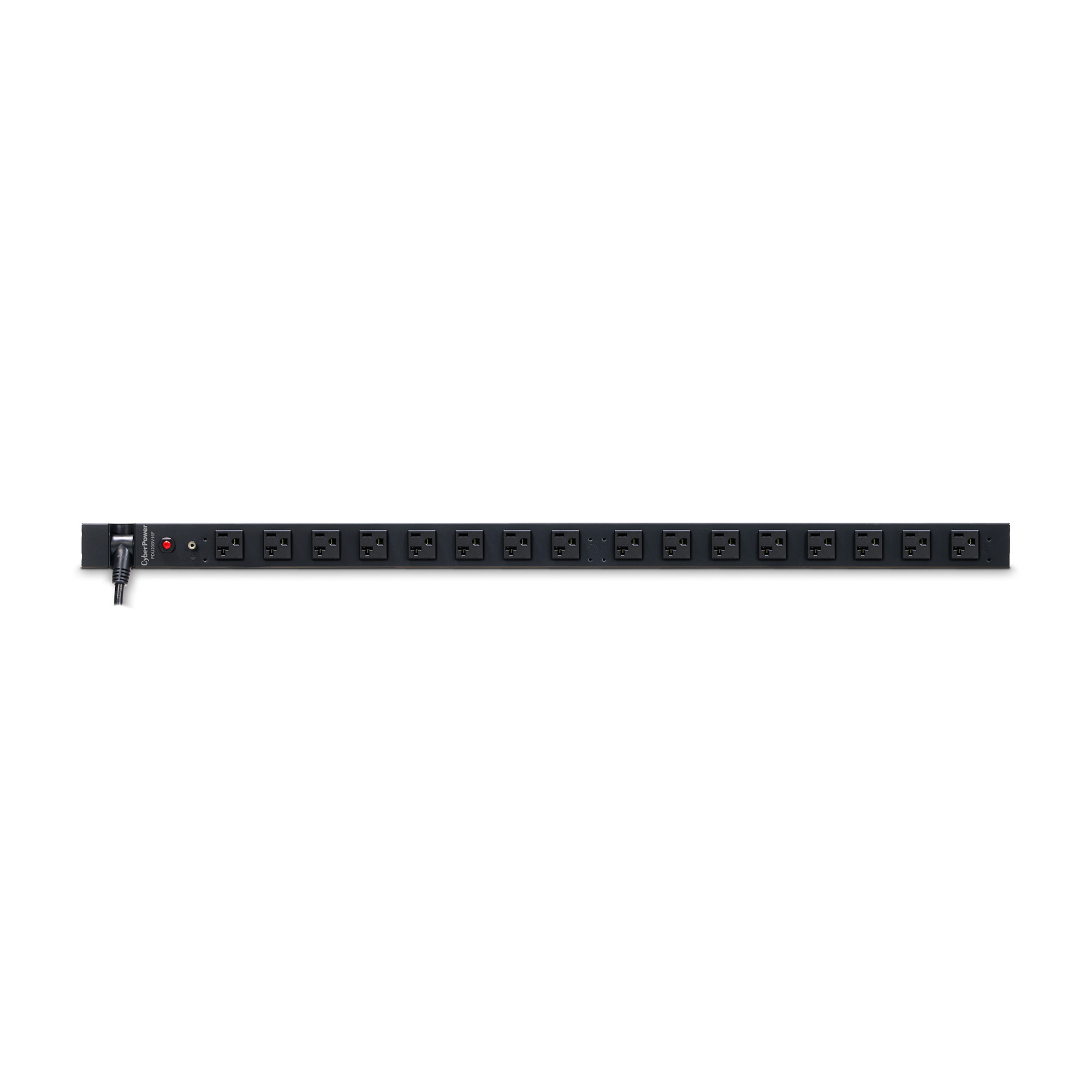 The CyberPower PDU20BV16F, a 16-outlet (front), 0U vertical rackmount basic power distribution unit (PDU), provides 100 – 125 V 20A output. It distributes power to 16 NEMA 5-20R receptacles from a single NEMA 5-20P plug with unfiltered electrical pass-through. Designed for datacenters and other electrically demanding applications, the PDU20BV16F has rugged, industrial-grade metal housing and a 10-foot AC power cord. It supports vertical, horizontal, and wall mount installation, includes a cord retention tray, and is ETL/RoHS certified. A limited lifetime warranty covers defects in materials and workmanship in the product under normal use and conditions.
