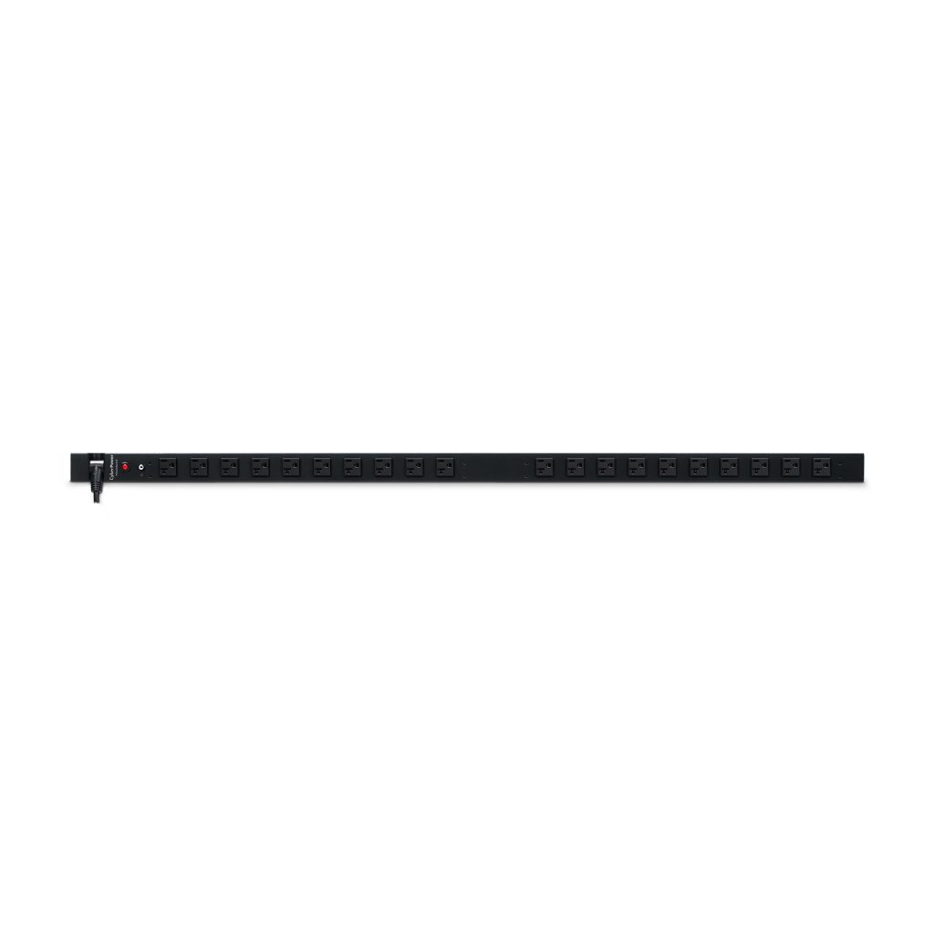 The CyberPower PDU20BV20F, a 20-outlet (front), 0U vertical rackmount basic power distribution unit (PDU), provides 100 – 125 V 20A output. It distributes power to 20 NEMA 5-20R receptacles from a single NEMA 5-20P plug with unfiltered electrical pass-through. Designed for datacenters and other electrically demanding applications, the PDU20BV20F has rugged, industrial-grade metal housing and a 10-foot AC power cord. It supports vertical, horizontal, and wall mount installation, includes a cord retention tray, and is ETL/RoHS certified. A limited lifetime warranty covers defects in materials and workmanship in the product under normal use and conditions.