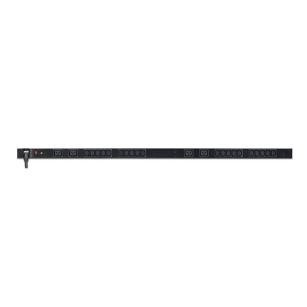 The CyberPower PDU20BVHVT24F, a 24-outlet (front), 0U vertical rackmount basic power distribution unit (PDU), provides 200/230V 20A output. It distributes power to 20 IEC-320 C13, 4 IEC-320 C19 receptacles from a single NEMA L6-20P twist lock plug, with unfiltered electrical pass-through. Designed for datacenters and other electrically demanding applications, the PDU20BVHVT24F has rugged, industrial-grade metal housing and a 10-foot AC power cord. It supports vertical, horizontal, and wall mount installation, includes a cord retention tray and is ETL/RoHS certified. A limited lifetime warranty covers defects in materials and workmanship in the product under normal use and conditions.