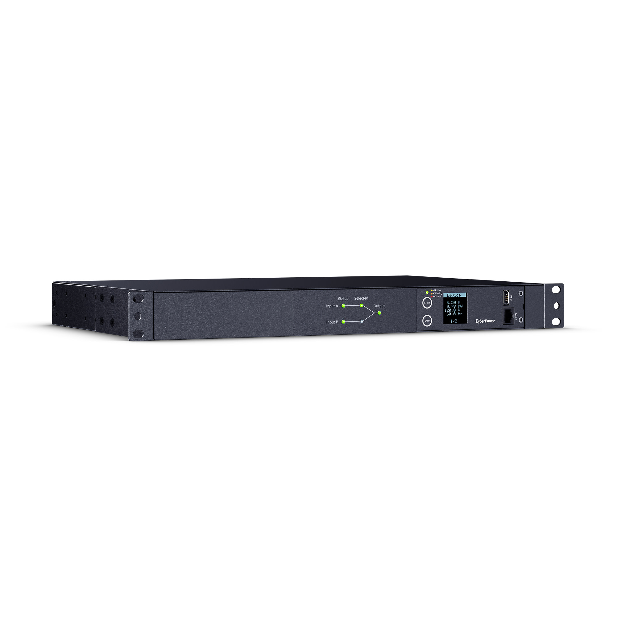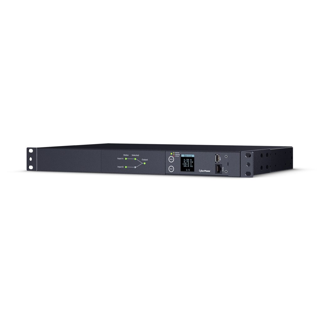 Dual power cords (A and B) provide redundant power sources to devices with single power supplies and can be plugged into separate compatible sources* to ensure continuous access. Users select the preferred source as the primary input. CyberPower Smart App Online and Sinewave series UPS are highly recommended for use as the power source.