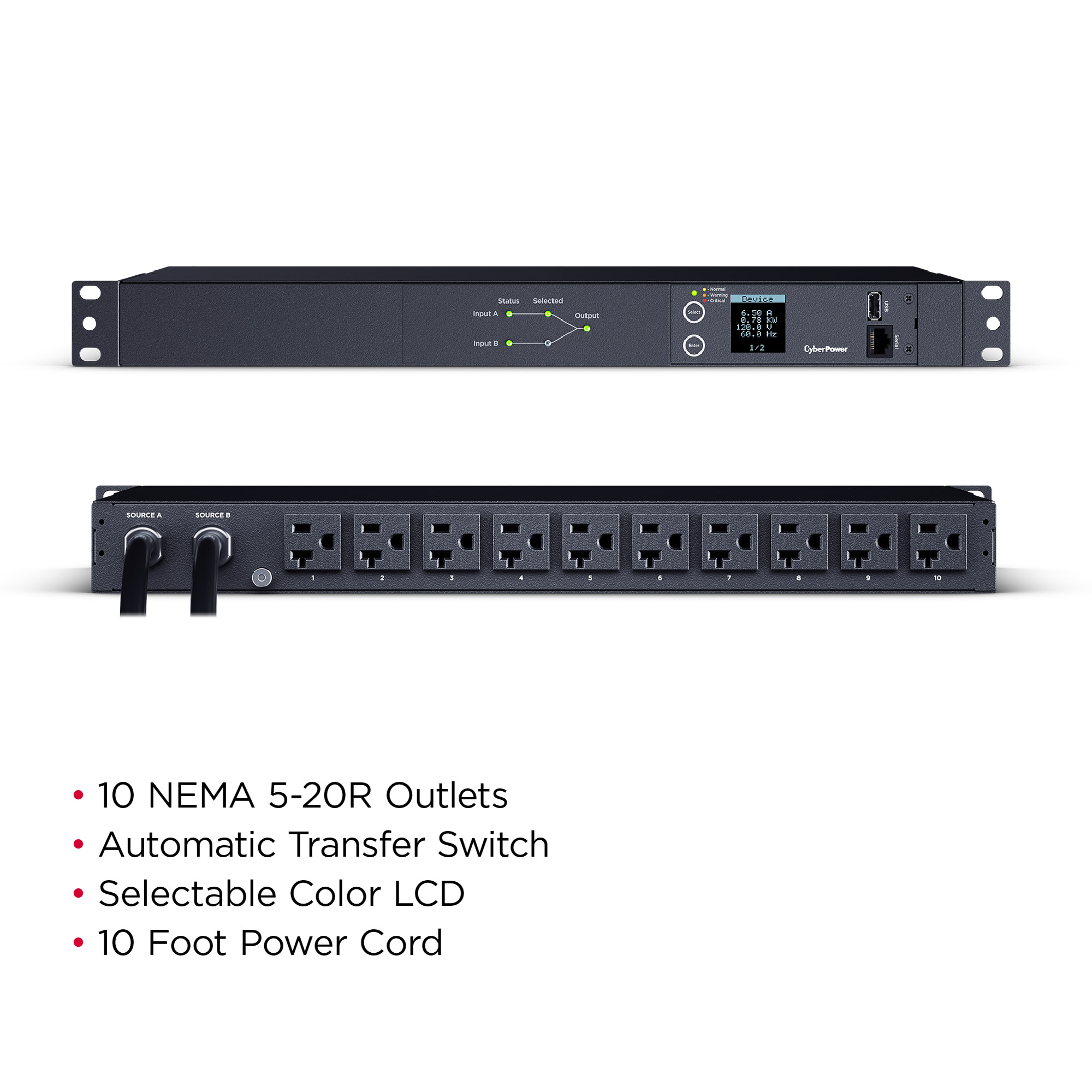 • Outlets: 10 x NEMA 5-20R
