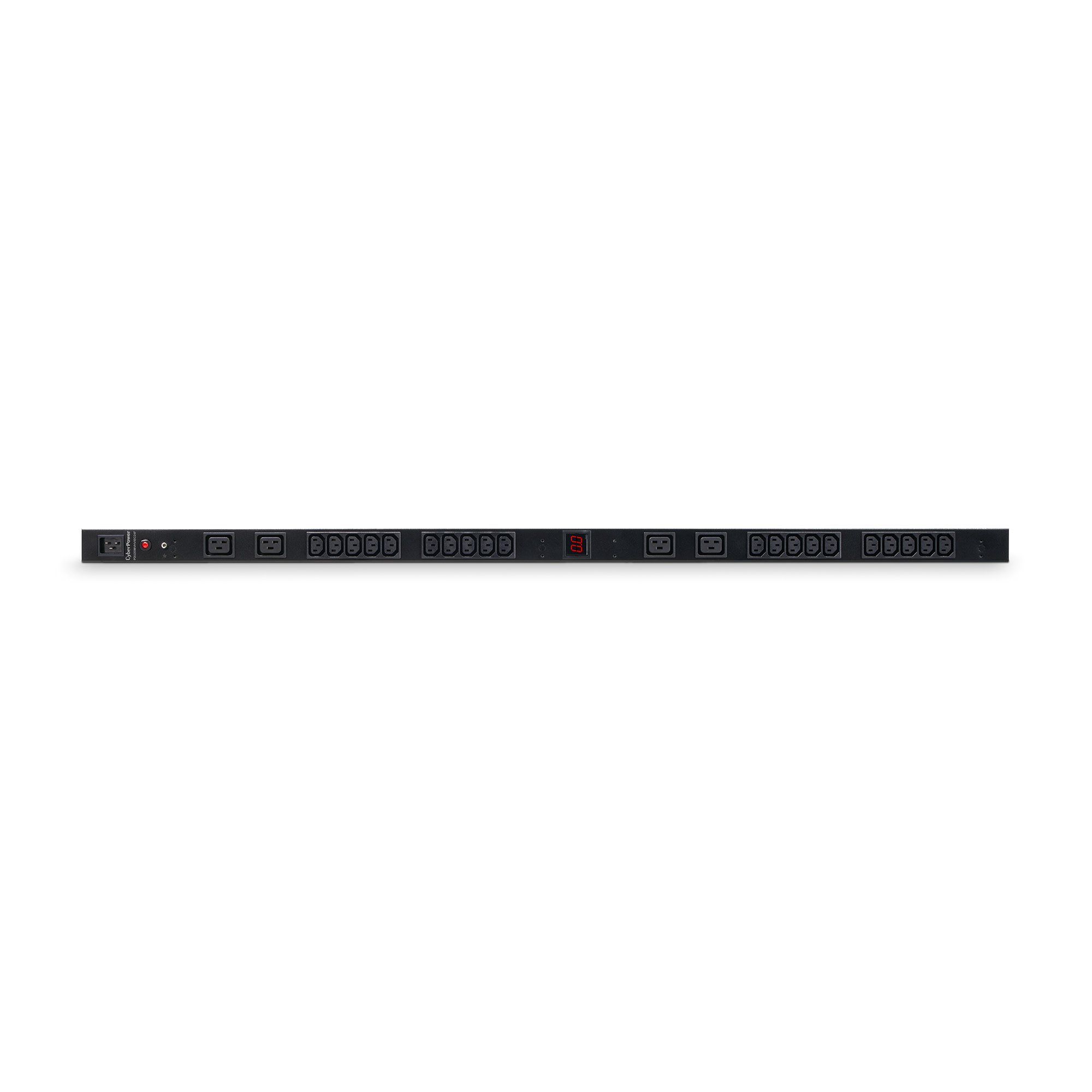 The CyberPower PDU20MVHVIEC24F, a 24-outlet (front), 0U vertical rackmount basic power distribution unit (PDU), provides 200/230V 20A output. It distributes power to 20 IEC-320 C13, 4 IEC-320 C19 receptacles from a single IEC-320 C20 plug with unfiltered electrical pass-through. The current draw for connected equipment is displayed in amps on the front LCD for real-time load monitoring.