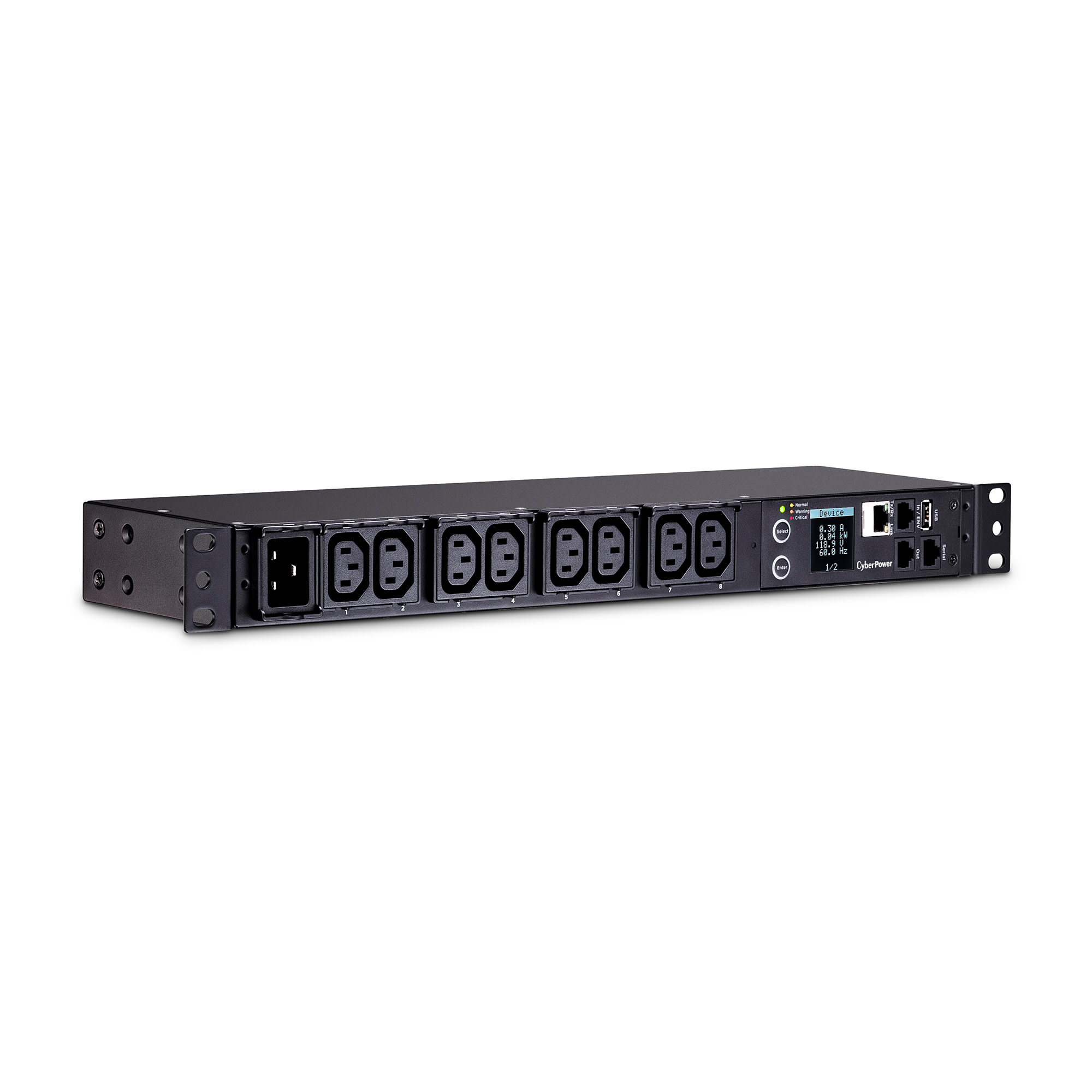 Provides easy-to-read information about amperage, voltage, KW, IP address, and other PDU information. - Network-Grade Plugs and Outlets