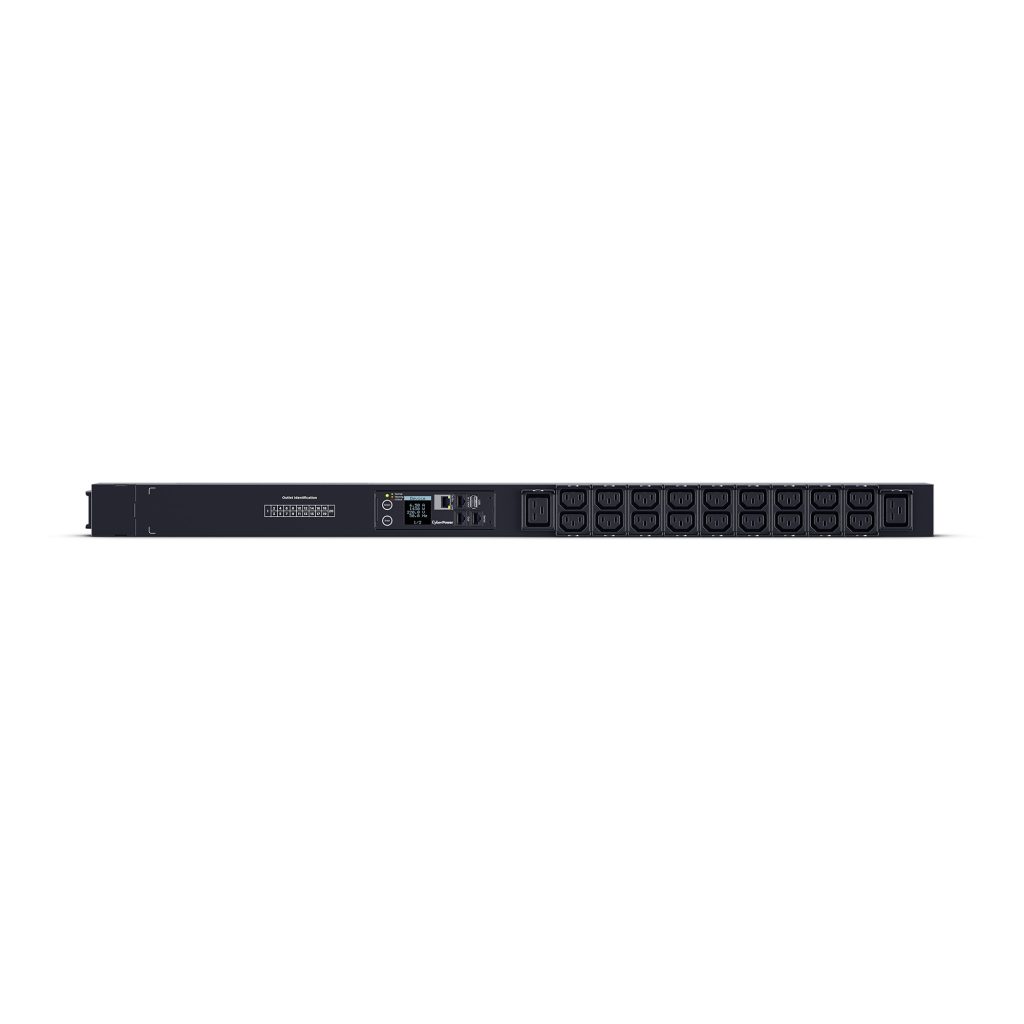 The CyberPower PDU31114, a 20-outlet (front), 0U rackmount monitored power distribution unit (PDU) provides 240V 20A output. PDU31114 distributes power to 18 IEC-320 C13 and 2 IEC-320 C19 receptacles from a single NEMA L6-20P plug with unfiltered electrical pass-through. Monitor power status over the network by using the CyberPower management console and the RJ45 Ethernet port for network connection. Monitor power status locally by using the LCD.