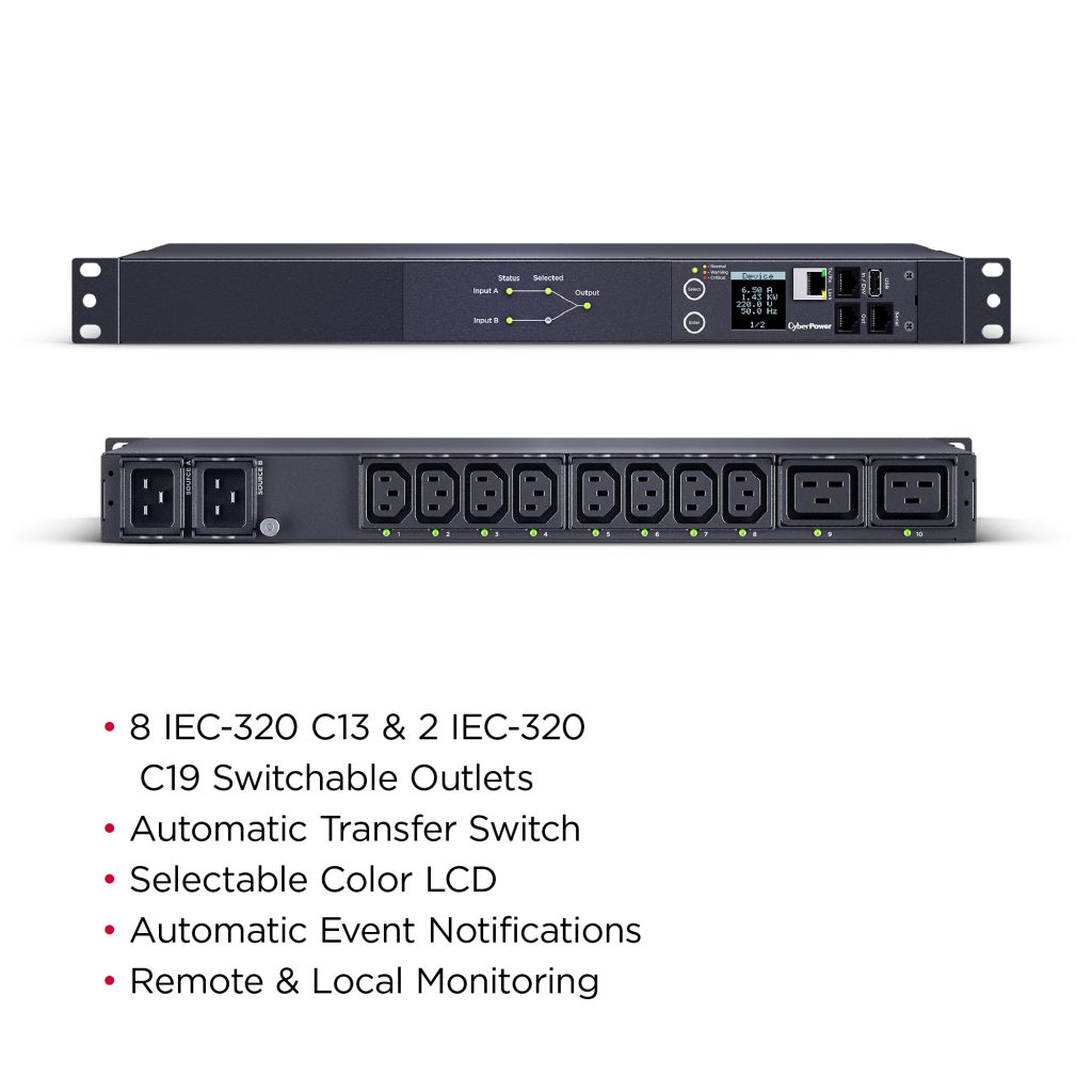 Ensure continued operation of critical devices with the CyberPower PDU44006 Switched ATS PDU. Ideal for data centers and network closets, this unit provides power redundancy to single-corded connected equipment. If power for the primary source exceeds the lower or upper thresholds, or if power fails, the PDU will switch to the secondary power source to ensure continuous operation. The PDU will switch back to the primary power source when incoming power becomes stable. Additionally, this unit offers real time remote and local monitoring and outlet management.
