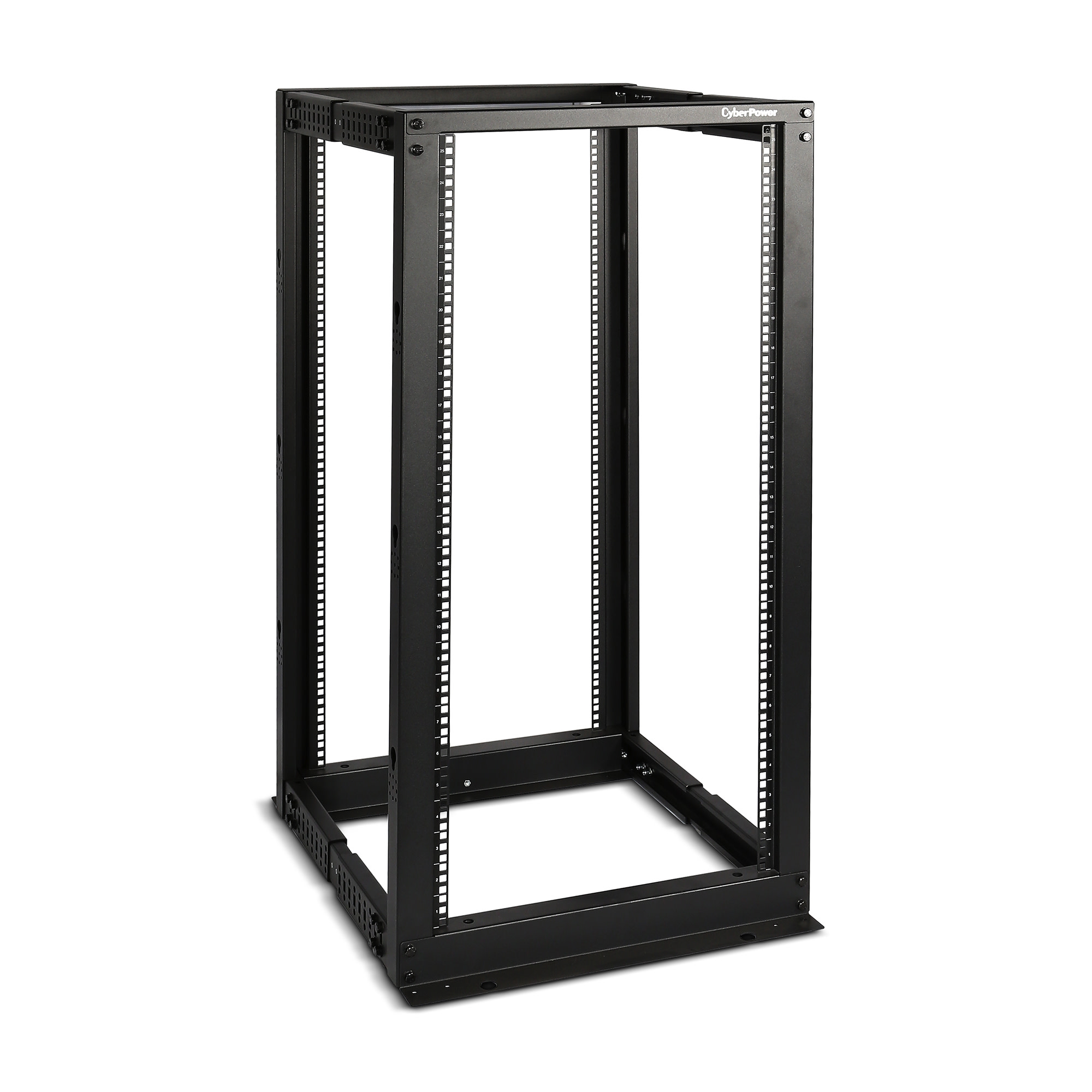 The CR25U40001 4-post rack can be customized with compatible accessories to meet specific requirements. The rack ships knock-down; assembly is required. It is covered by a 5-year limited warranty.