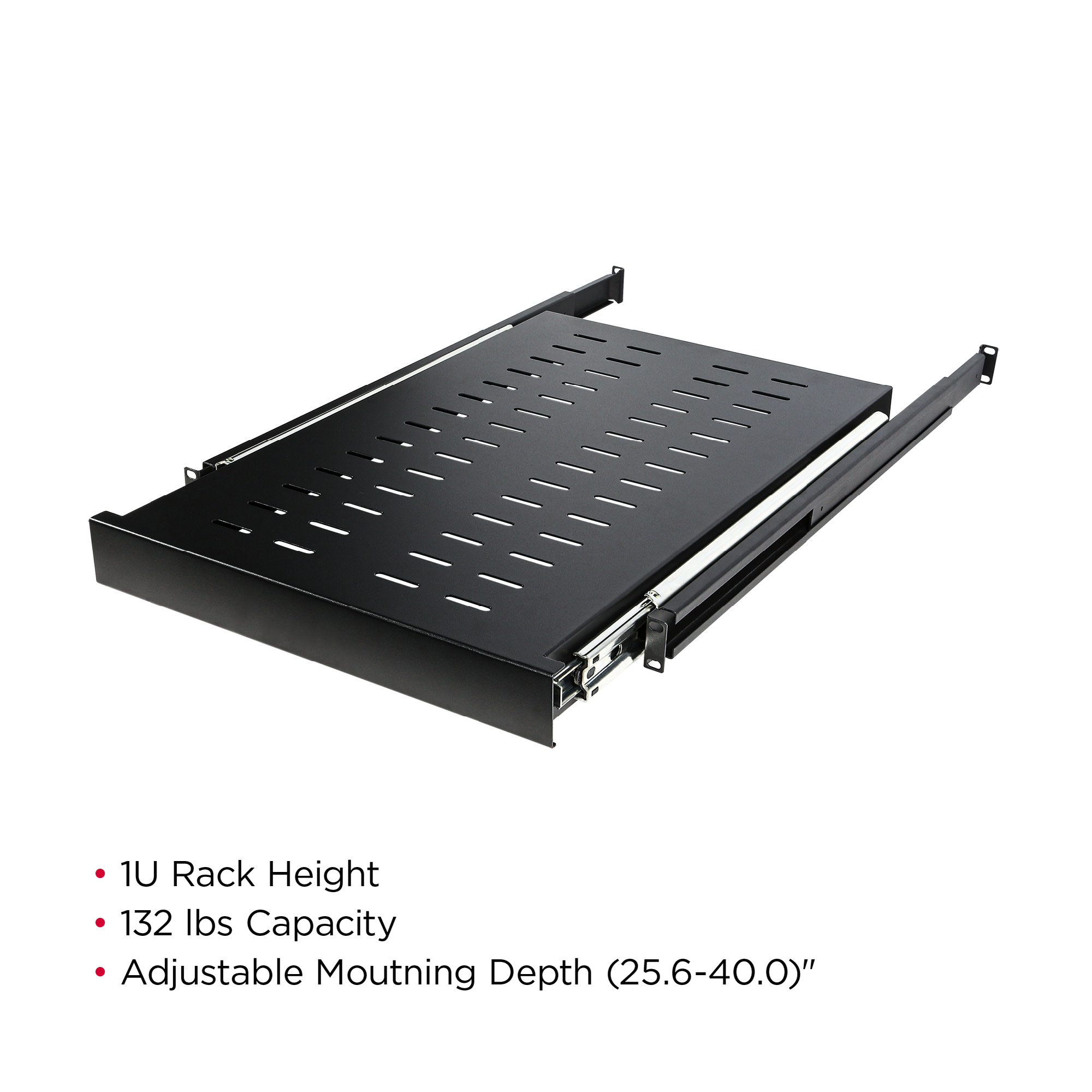 The CRA50003 is a 1U 25" deep sliding shelf that supports up to 132 lbs of IT equipment without rack mounts. Required mounting hardware is included. Compatible with models CR42U11001, CR24U11001, CR45U40001, and CR25U40001. The CRA50003 is covered by a 5-year limited warranty.