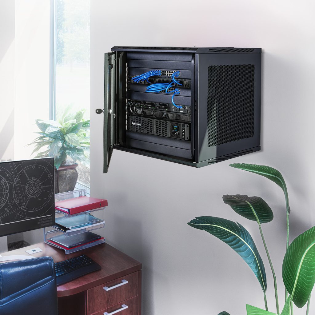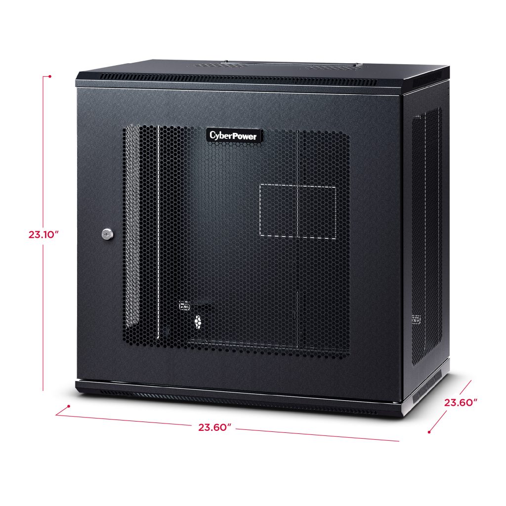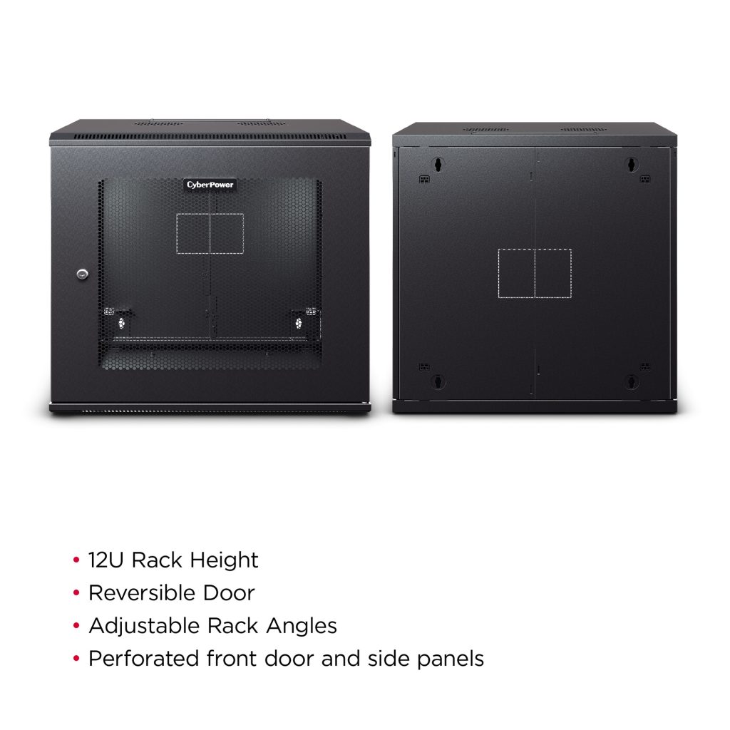 The CR12U61003 is designed for use in network closets, classrooms, and other locations. It houses network switches and patch panels up to 20.3 inches deep. This rack features convenient top panel cable access openings, perforated doors and side panels for efficient airflow, adjustable rack angles, and square and threaded mounting holes. The CR12U61003 ships fully assembled for quick deployment and can be customized with compatible accessories. It is covered by a 5-year limited warranty.