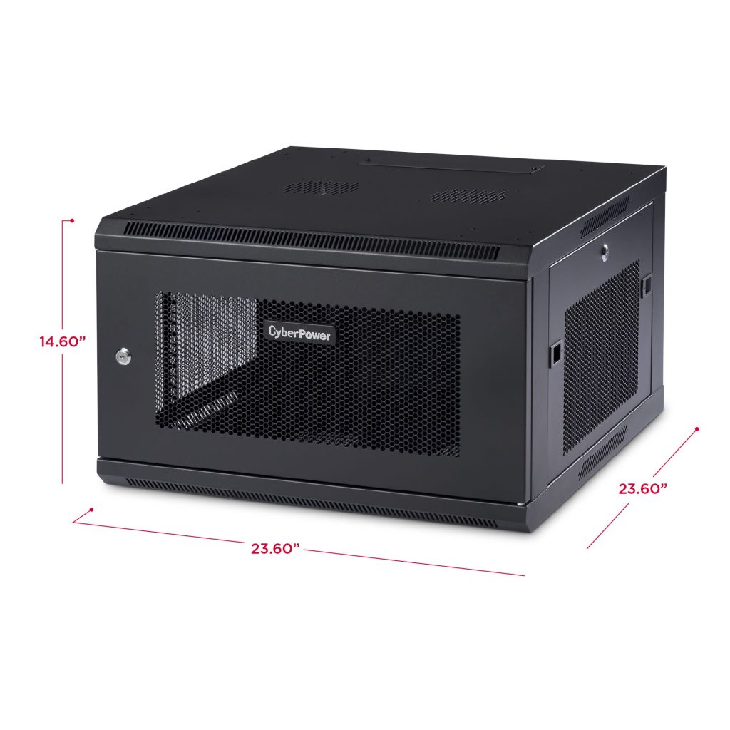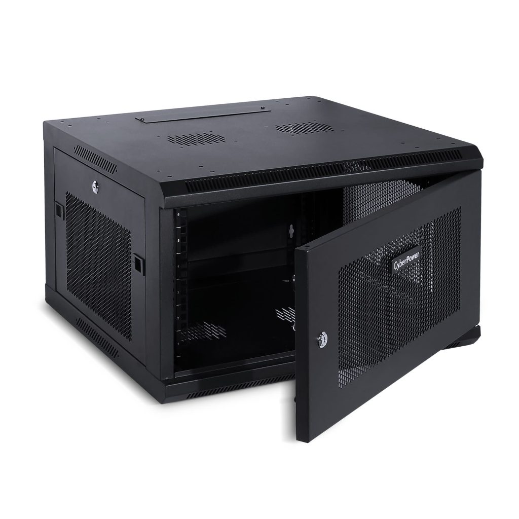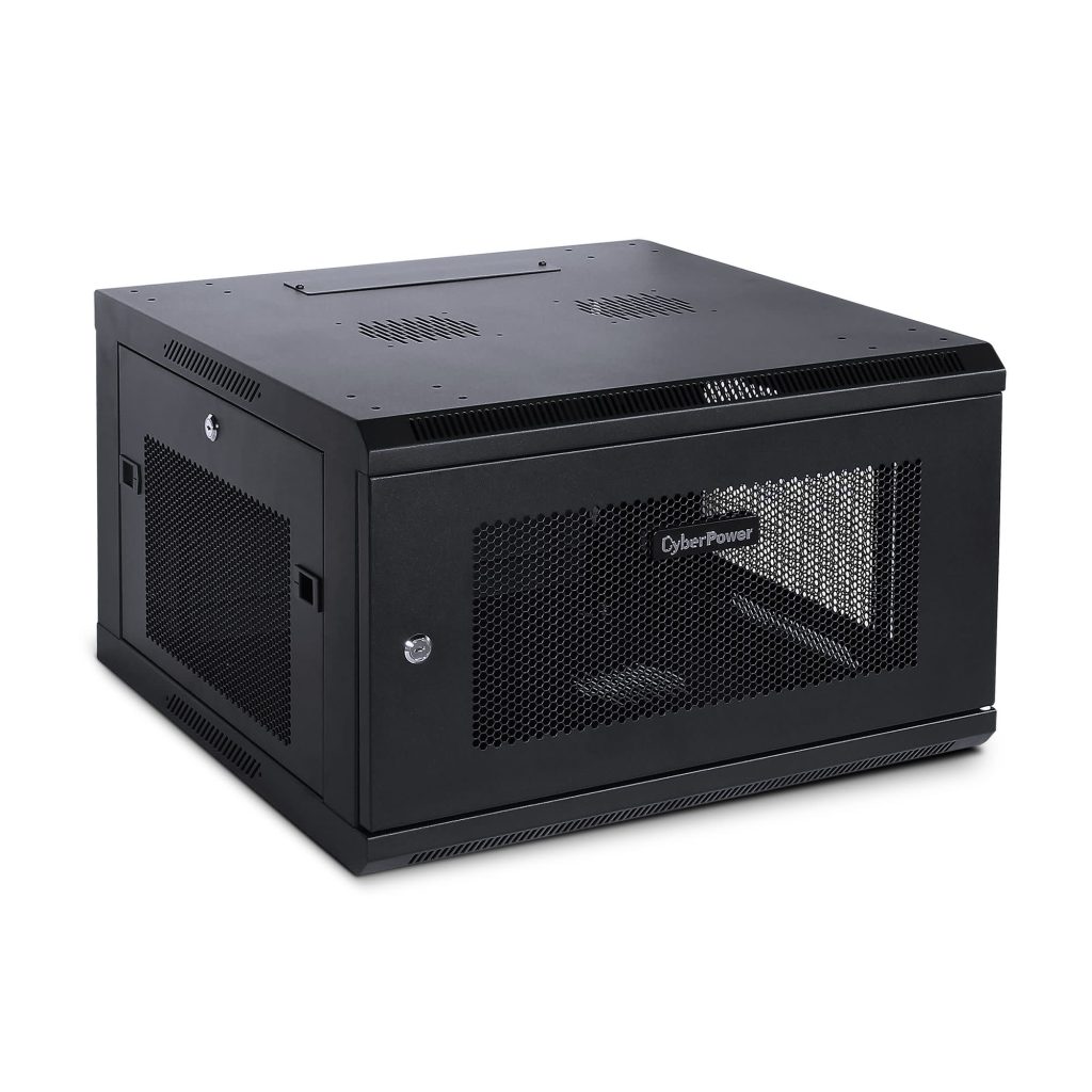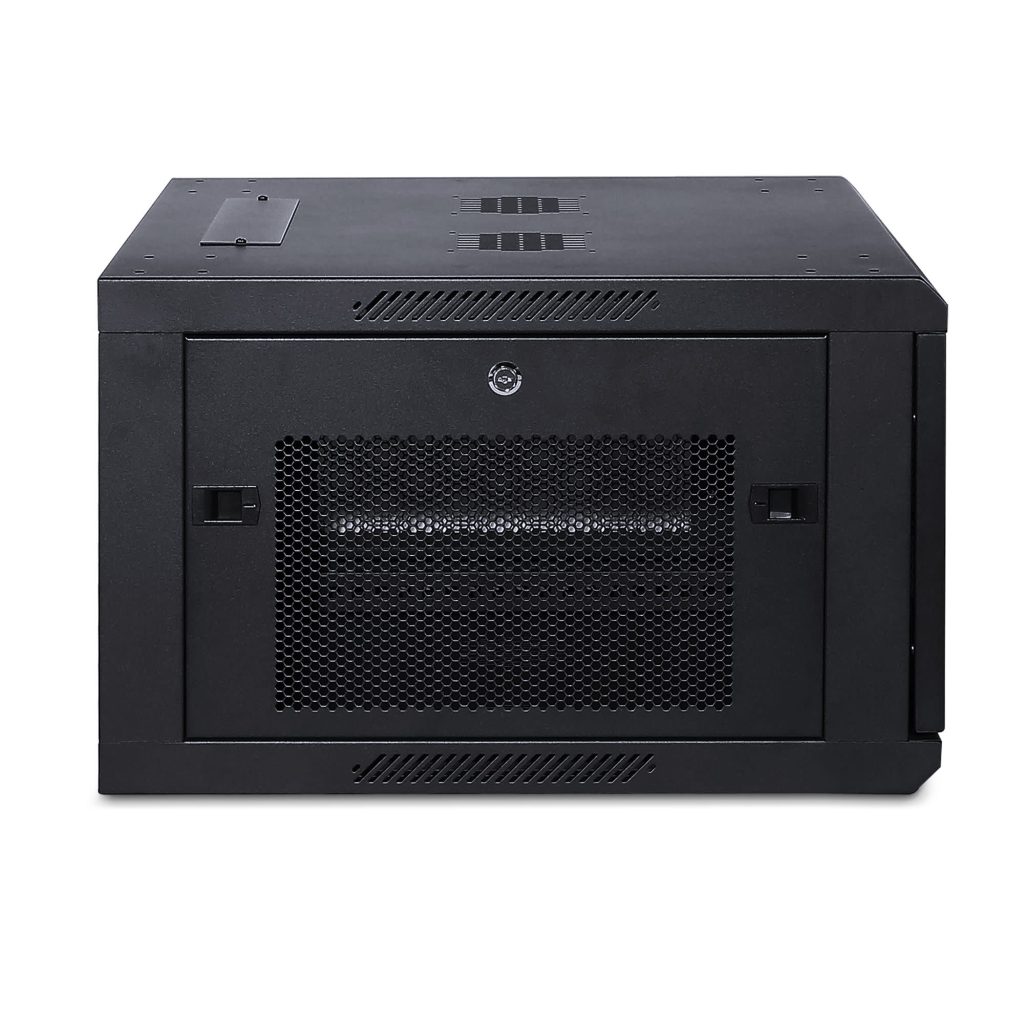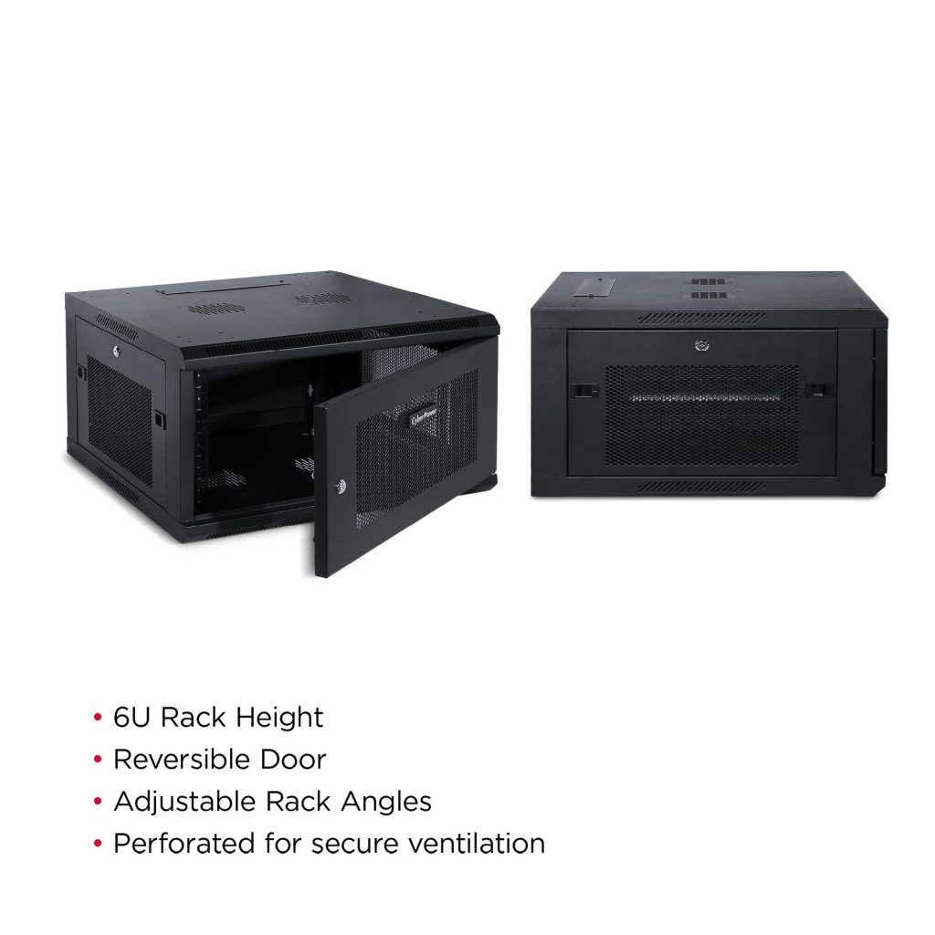 The CR6U61001 is designed for use in network closets, classrooms, and other locations. This wall mount rack houses network switches and patch panels up to 22" deep. It includes convenient top panel cable access openings, perforated front door and side panels for efficient airflow, adjustable rack angles, and square and threaded mounting holes. The CR6U61001 ships fully assembled for quick deployment and can be customized with compatible accessories. It is covered by a 5-year limited warranty.