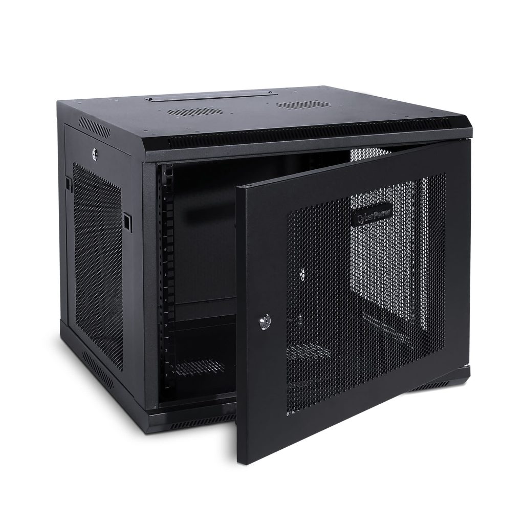 The CR9U61001 is designed for use in network closets, classrooms and other locations. This wall mount rack houses network switches and patch panels up to 22" deep. It includes convenient top panel cable access openings, perforated door and side panels for efficient airflow, adjustable rack angles, and square and threaded mounting holes. The CR9U61001 ships fully assembled for quick deployment, and can be customized with compatible accessories. It is covered by a 5-year limited warranty.
