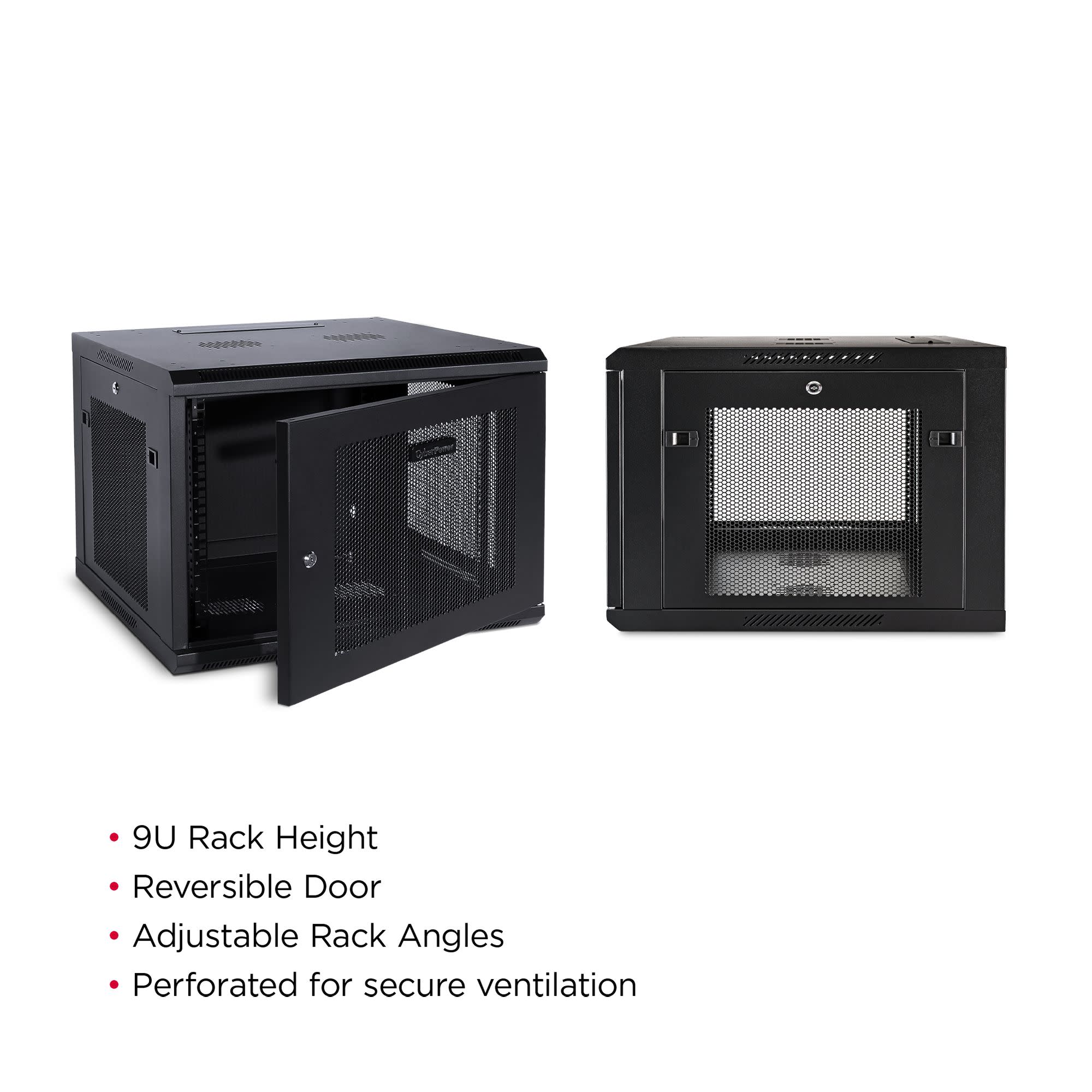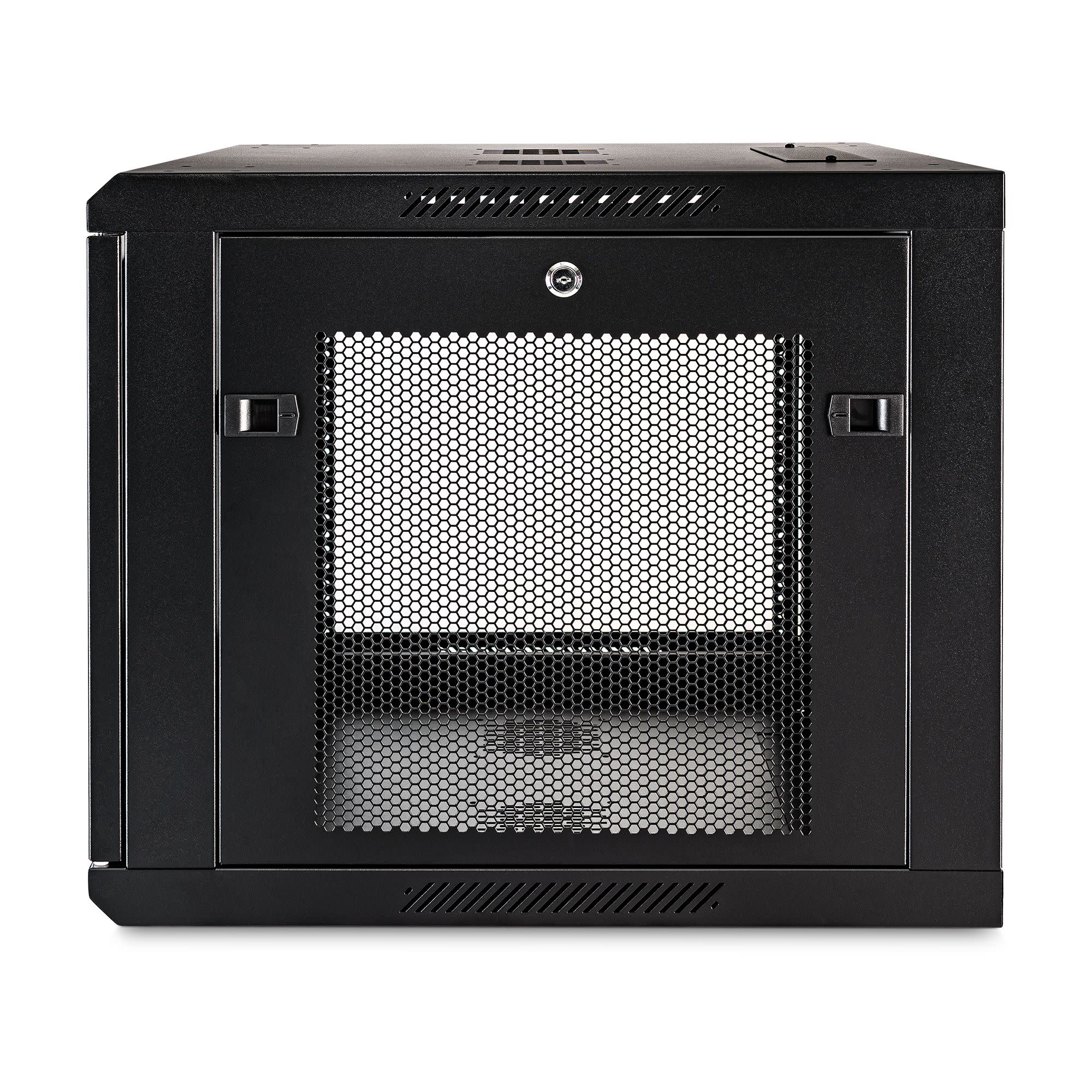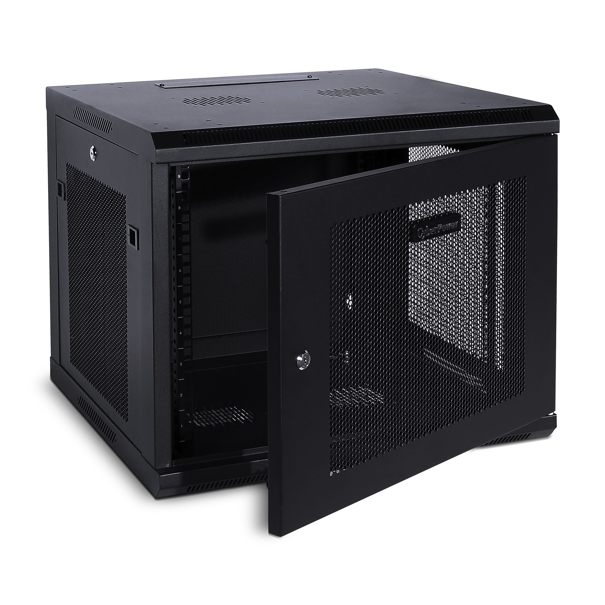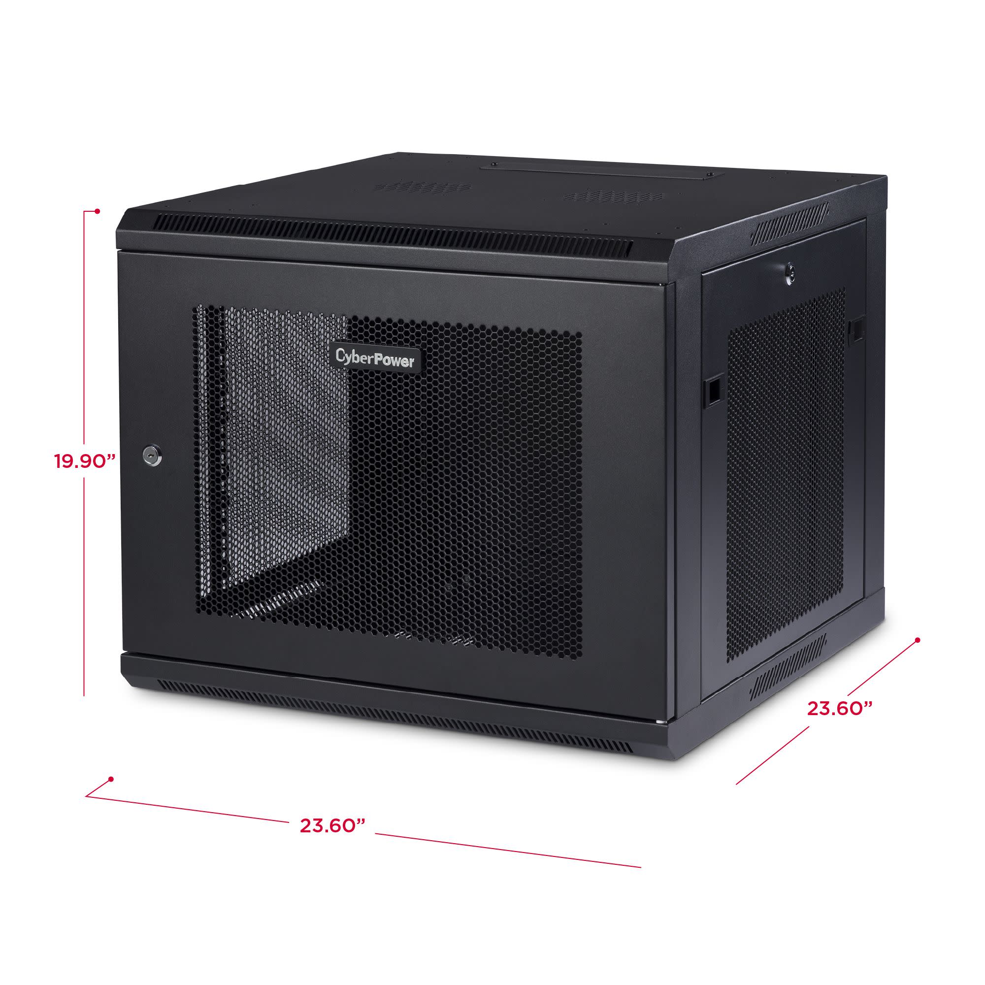 The CR9U61001 is designed for use in network closets, classrooms and other locations. This wall mount rack houses network switches and patch panels up to 22" deep. It includes convenient top panel cable access openings, perforated door and side panels for efficient airflow, adjustable rack angles, and square and threaded mounting holes. The CR9U61001 ships fully assembled for quick deployment, and can be customized with compatible accessories. It is covered by a 5-year limited warranty.