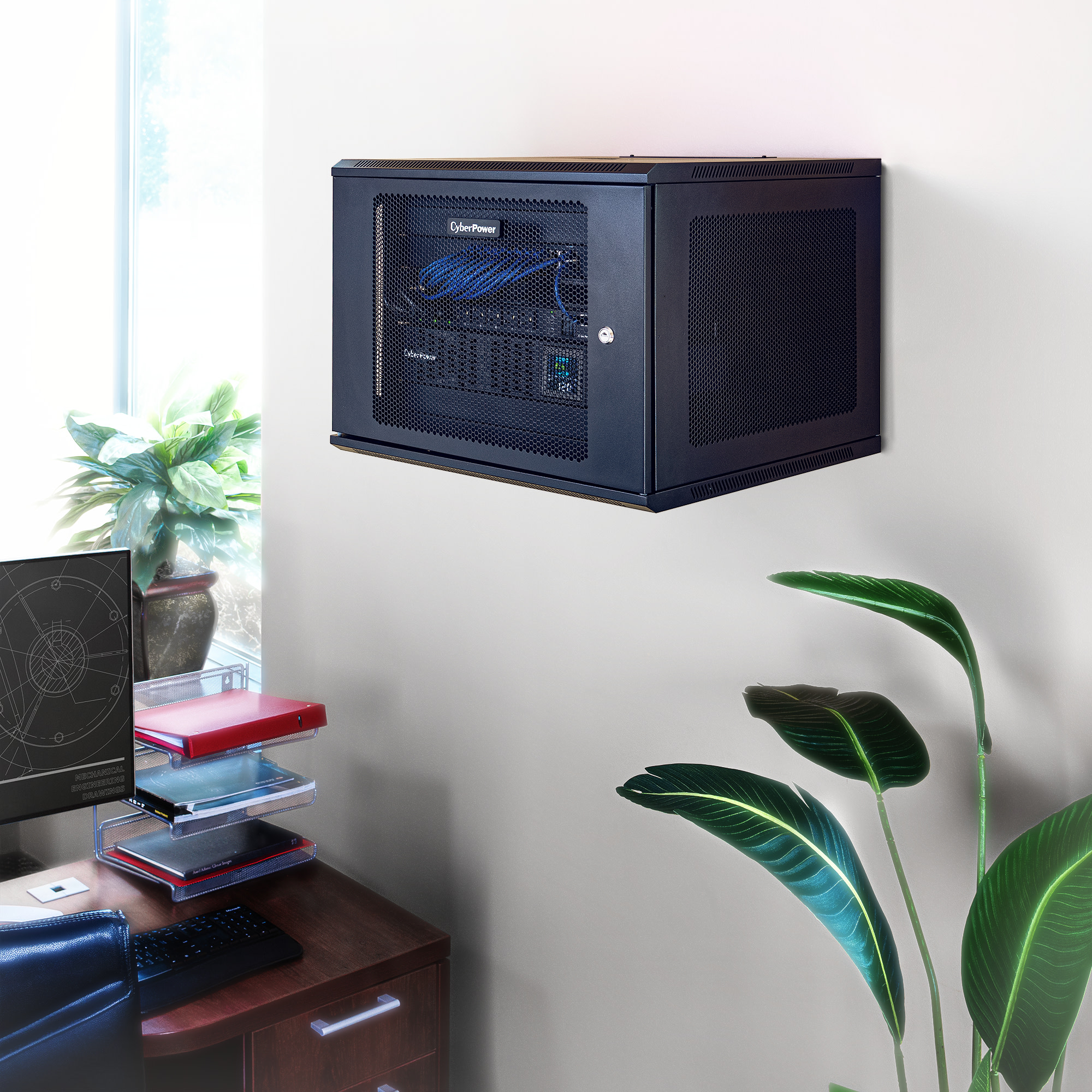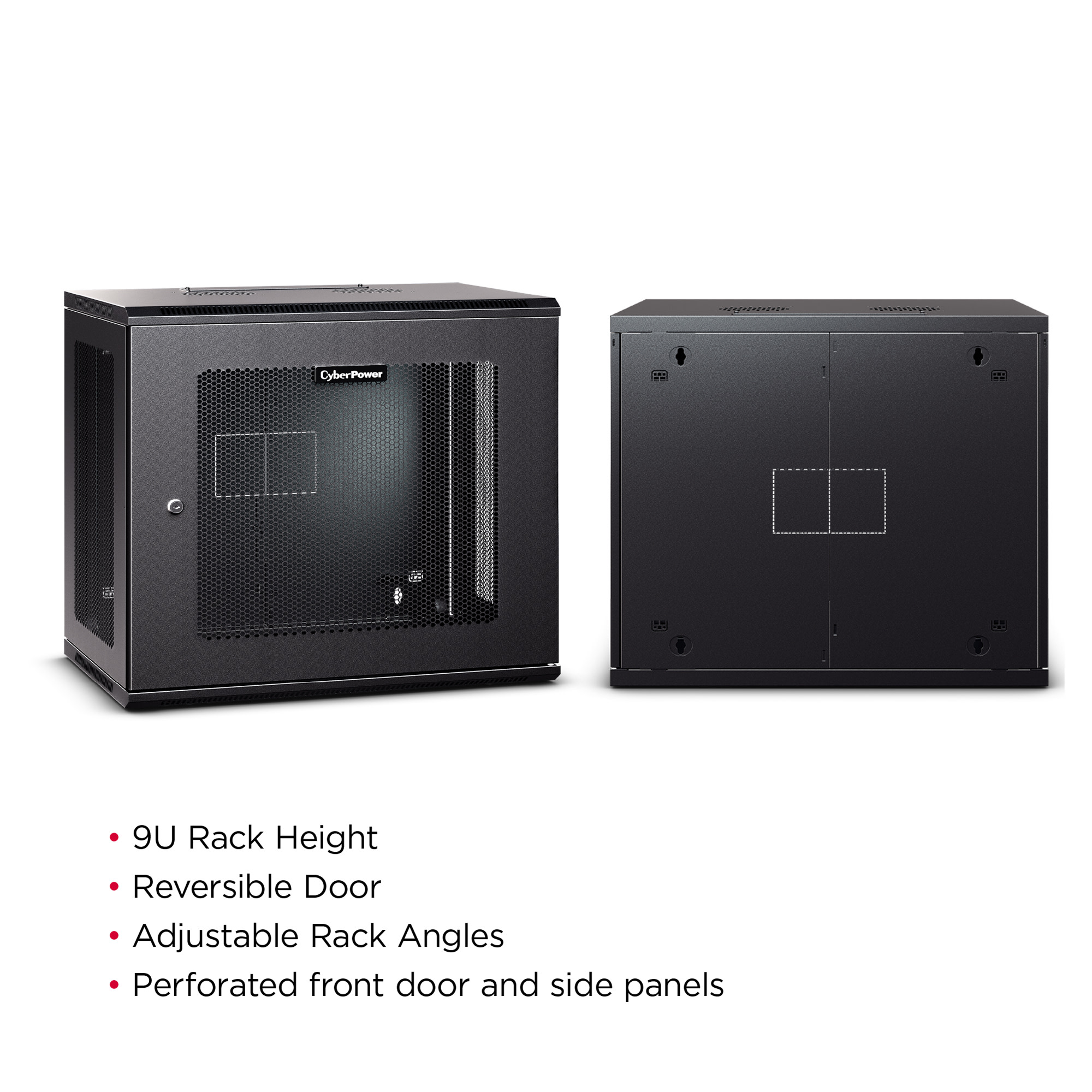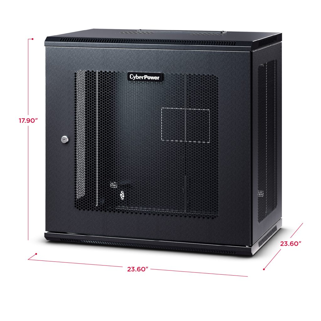 The CR9U61003 is designed for use in network closets, classrooms and other locations. This wall mount rack houses network switches and patch panels up to 20.3" deep. It includes convenient top panel cable access openings, perforated door and side panels for efficient airflow, adjustable rack angles, and square and threaded mounting holes. The CR9U61003 ships fully assembled for quick deployment, and can be customized with compatible accessories. It is covered by a 5-year limited warranty.