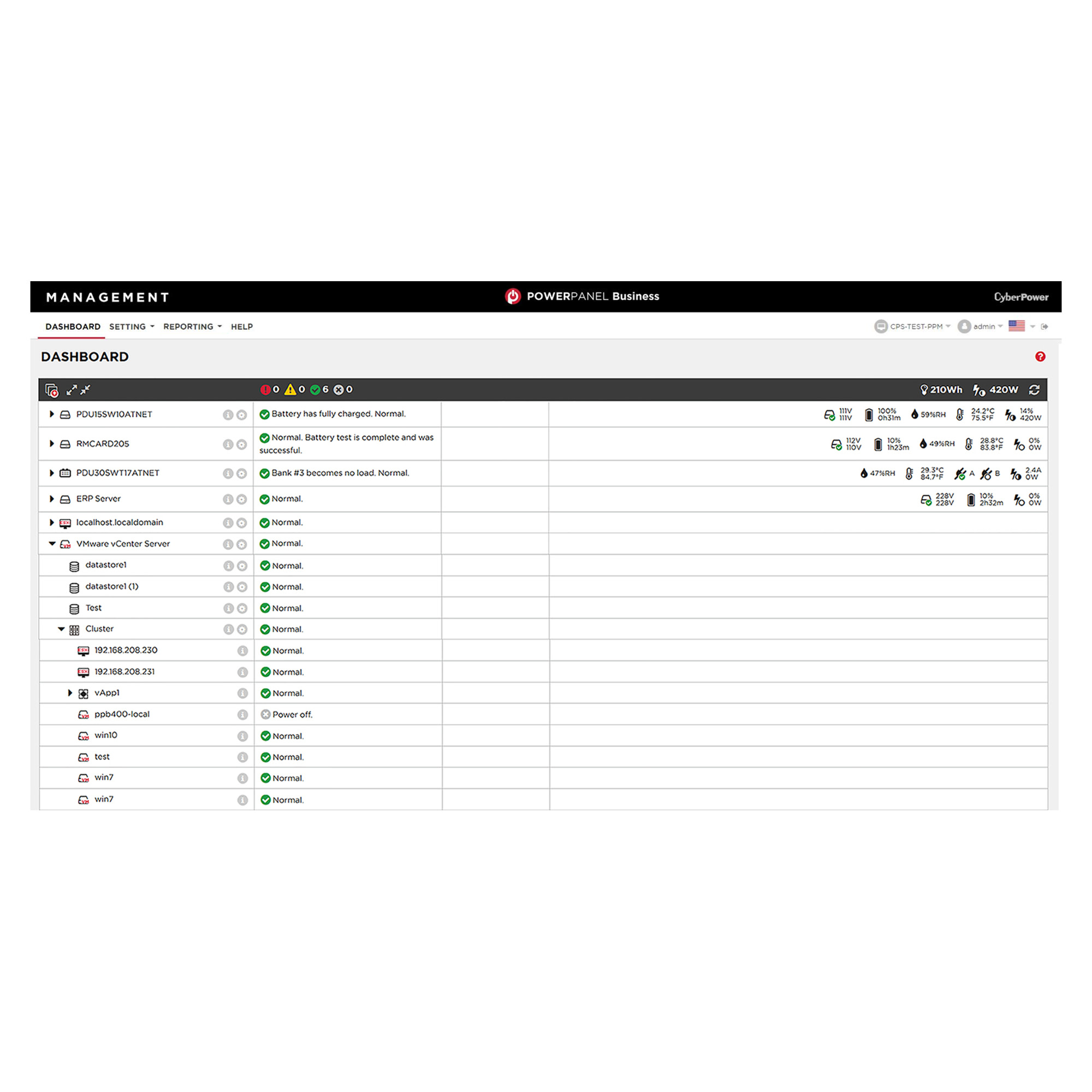 Industry leading, user-friendly interface uses color graphics and indicators to provide quick views of UPS status, network power conditions, and instant problem recognition. Enhanced menus, tables, and icons promote intuitive operation and navigation of the software.