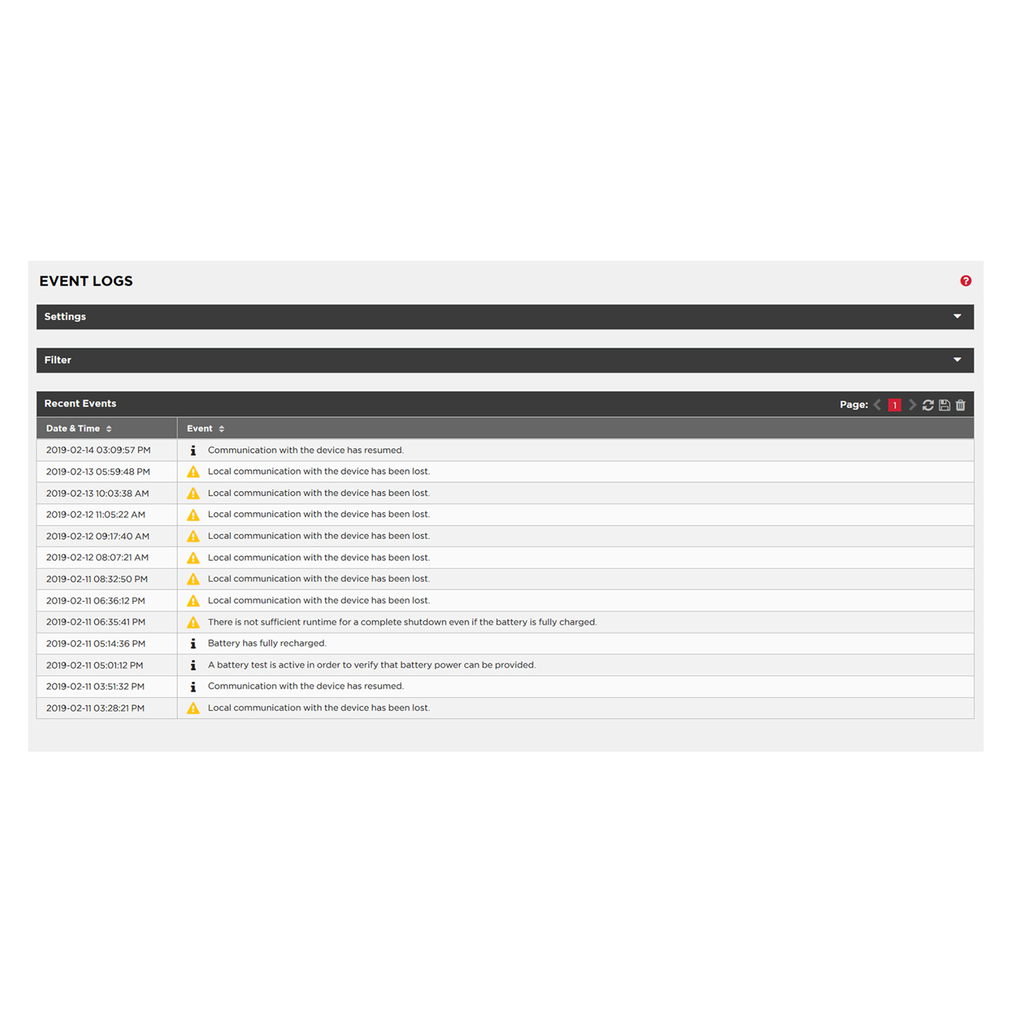 Offers versatile management of various event actions, including utility power failure, local communication loss, remaining runtime being exhausted, among others.