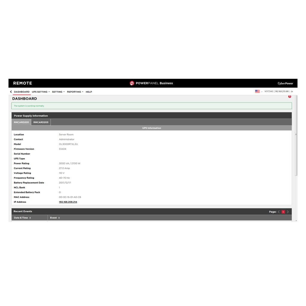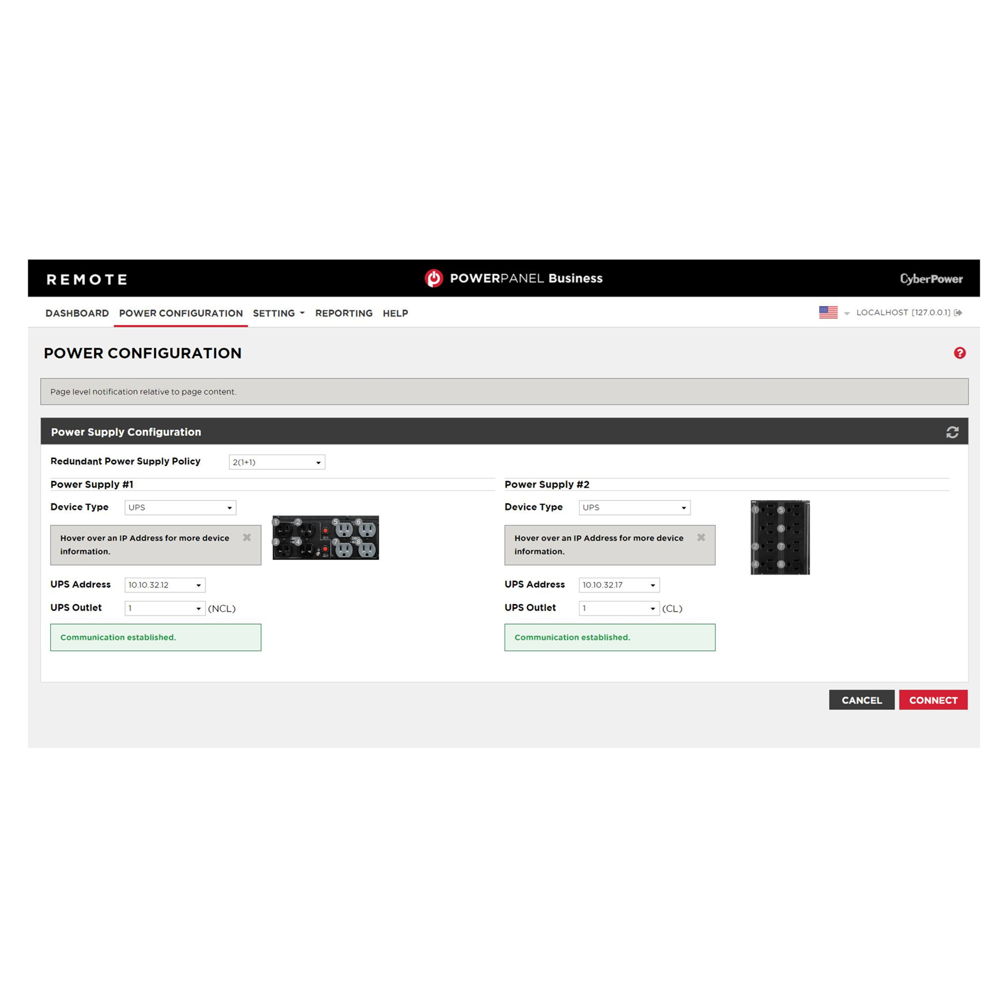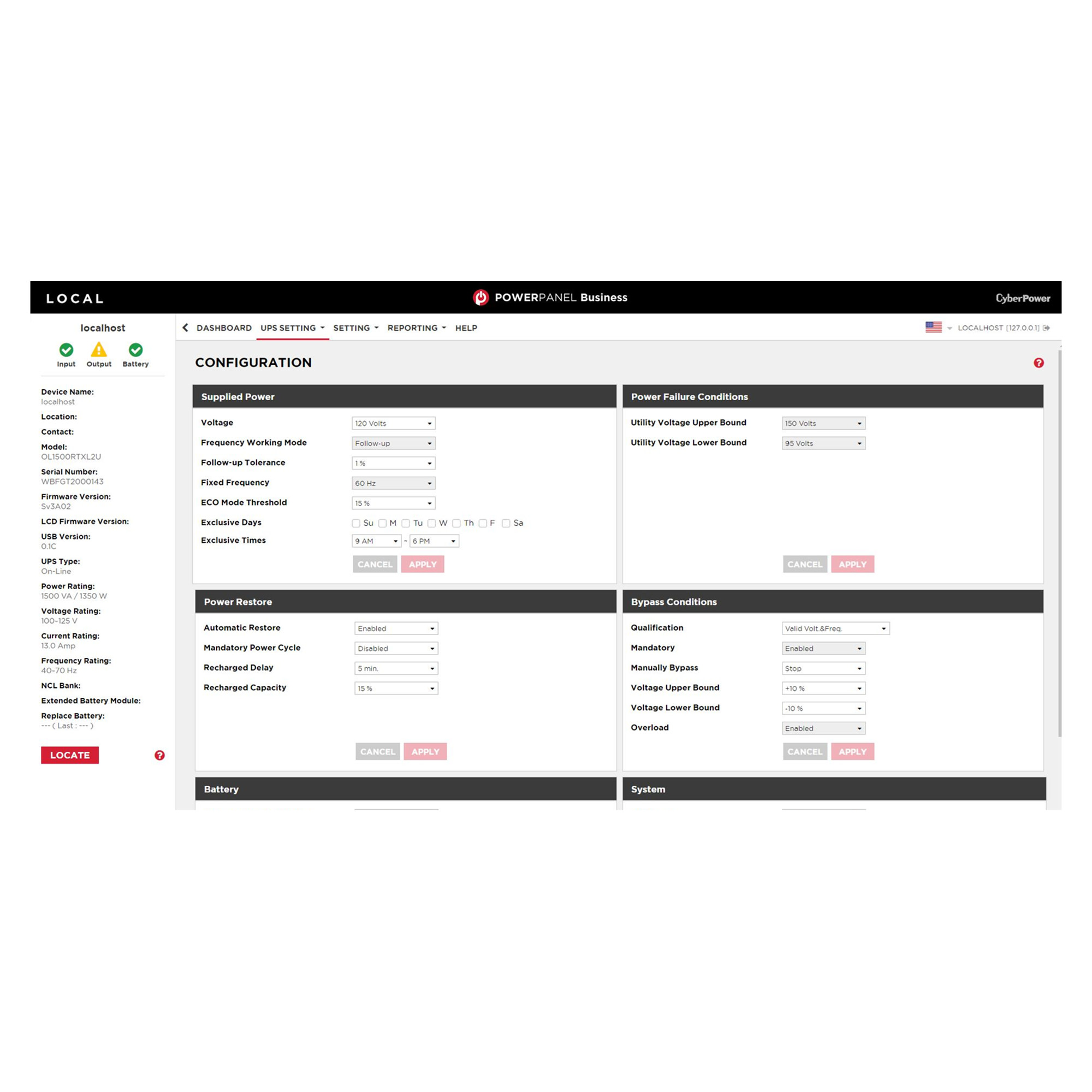 UPS using the PowerPanel Business Remote module can be monitored with the PowerPanel® Cloud application. Requires purchase of license.