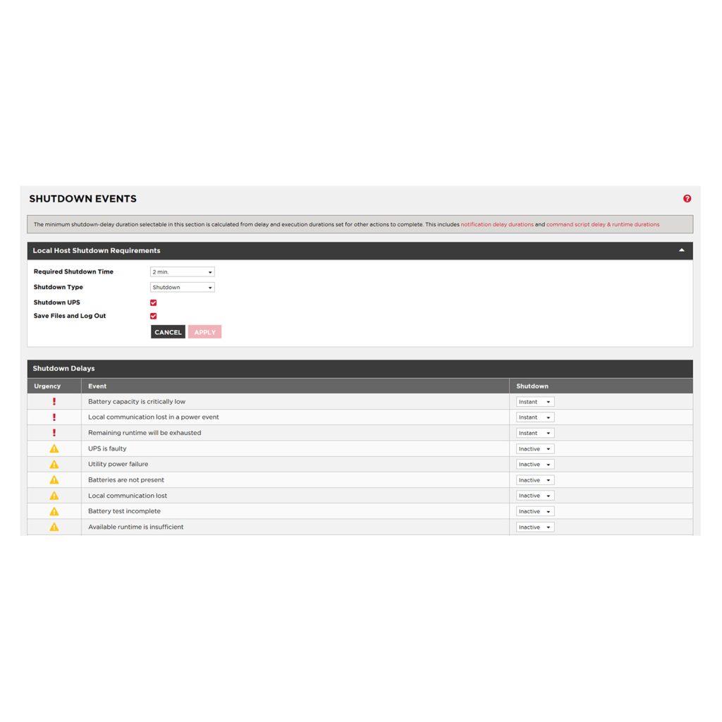 PowerPanel Business software’s Local and Remote modules have the ability to shut down a virtual environment by signaling virtual machines to shut down before the software notifies the VMware ESXi™ host to shut down.
