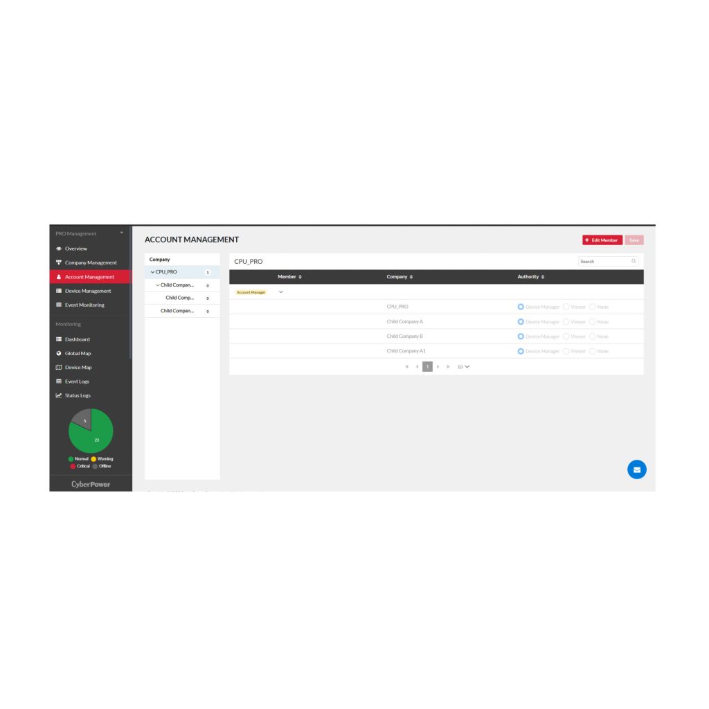 It allows companies to set up group and/or subgroups to manage UPS systems spread over different locations locally, nationally, or globally. - Admin/Viewer Permissions